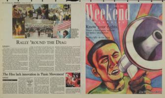 ticipants and pedestrians. Saturday's Hash Bash rally in the Diag,