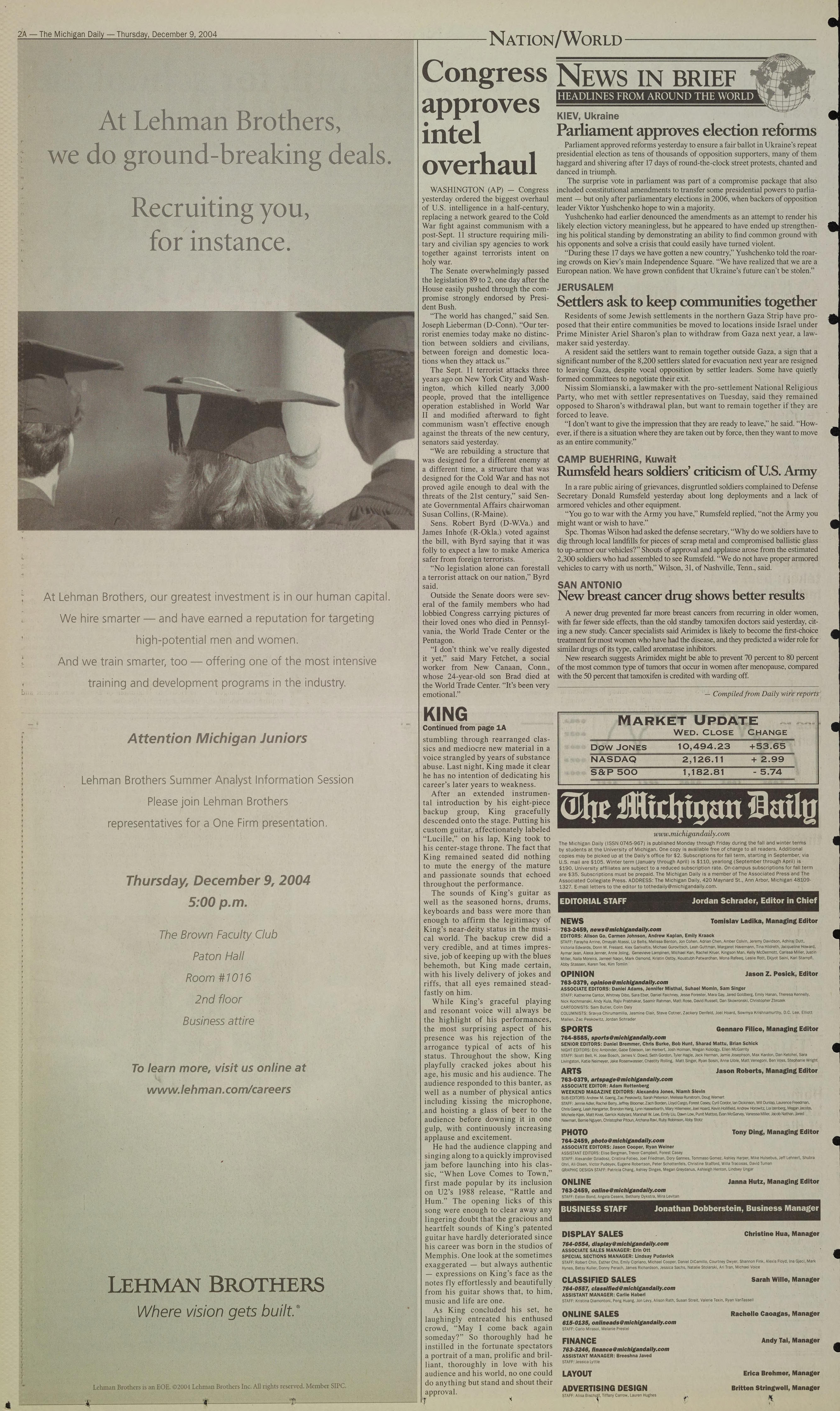 STAFF: Jennie Adler, Rachel Berry, Jeffrey Bloomer, Zach Borden, Lloyd Cargo, forest Casey, Cyril Cordor. Ian Dickinson, Will Dunlap, Laurence Freedman,