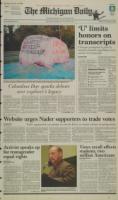"The Rock" on the comer of Washtenaw Avenue and Hill Street Is painted In protest of Columbus Day yesterday. The Native American Student Association