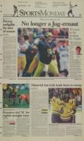 Sophomore quarterback Chad Henne is hit on his blindside by Minnesota linebacker Mario Reese. Henne was pressured throughout the game by the Gophers front