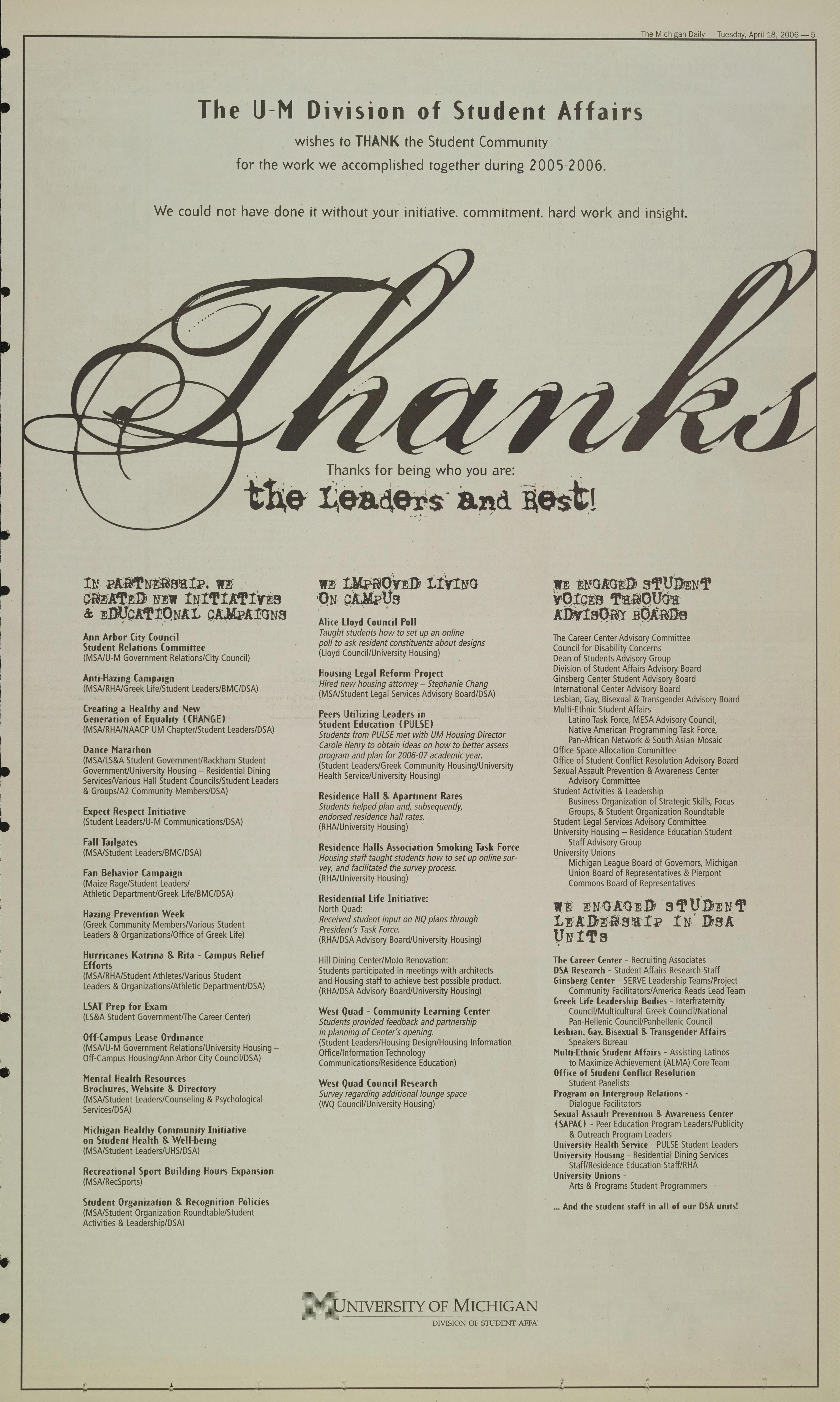 (Student Leaders/U-M Communications/DSA)