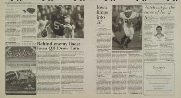 Iowa quarterback Drew Tate will try to lead his team to a bounce-back victory against Michigan tomorrow.