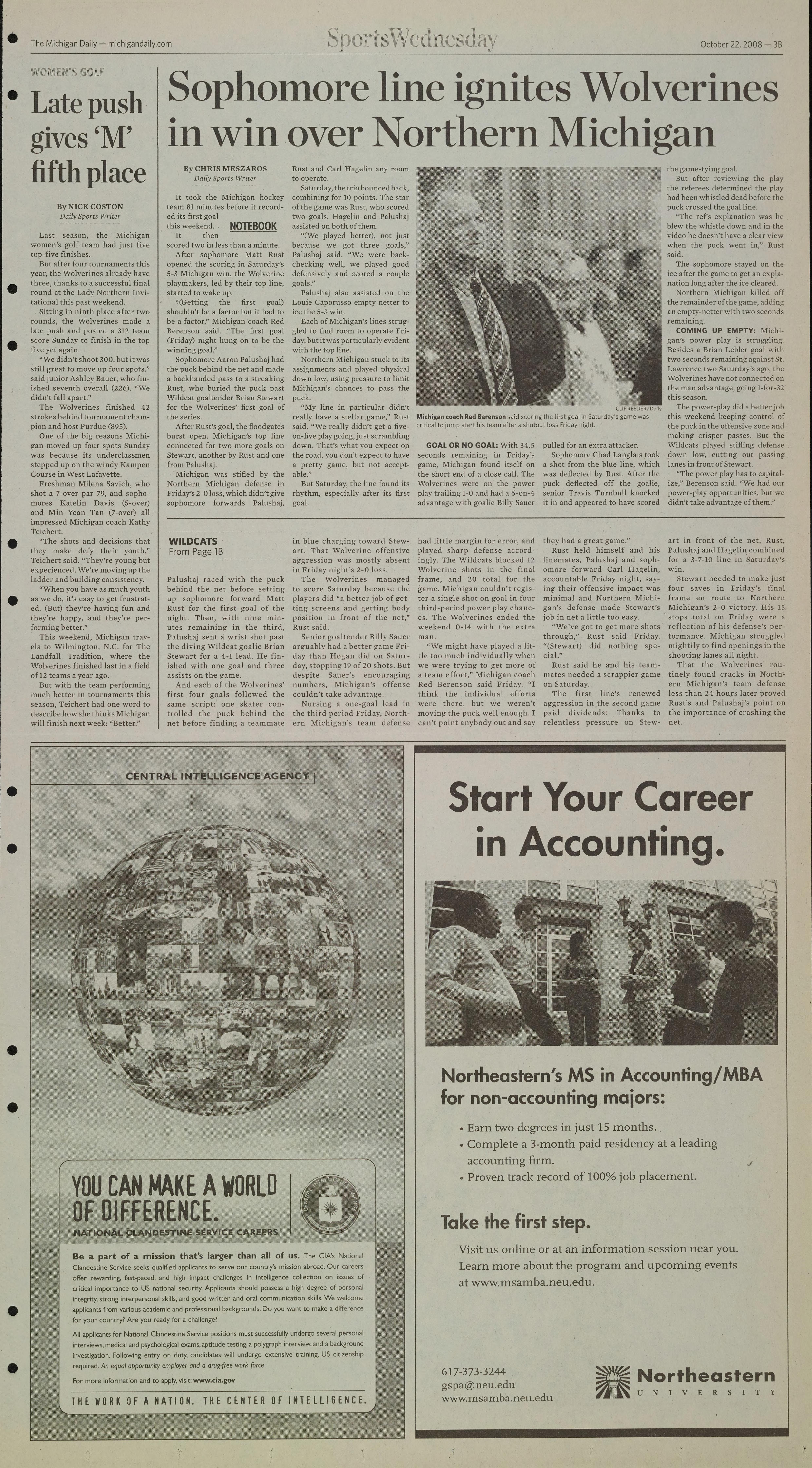 Michigan's 2-0 victory. His 15
