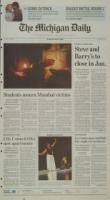LSA senior Alex Perry and L SA junior Romargo Ludmer listen to the names of the victims of the Mumbai attacks being read at a vigil late Monday night on the Diag.