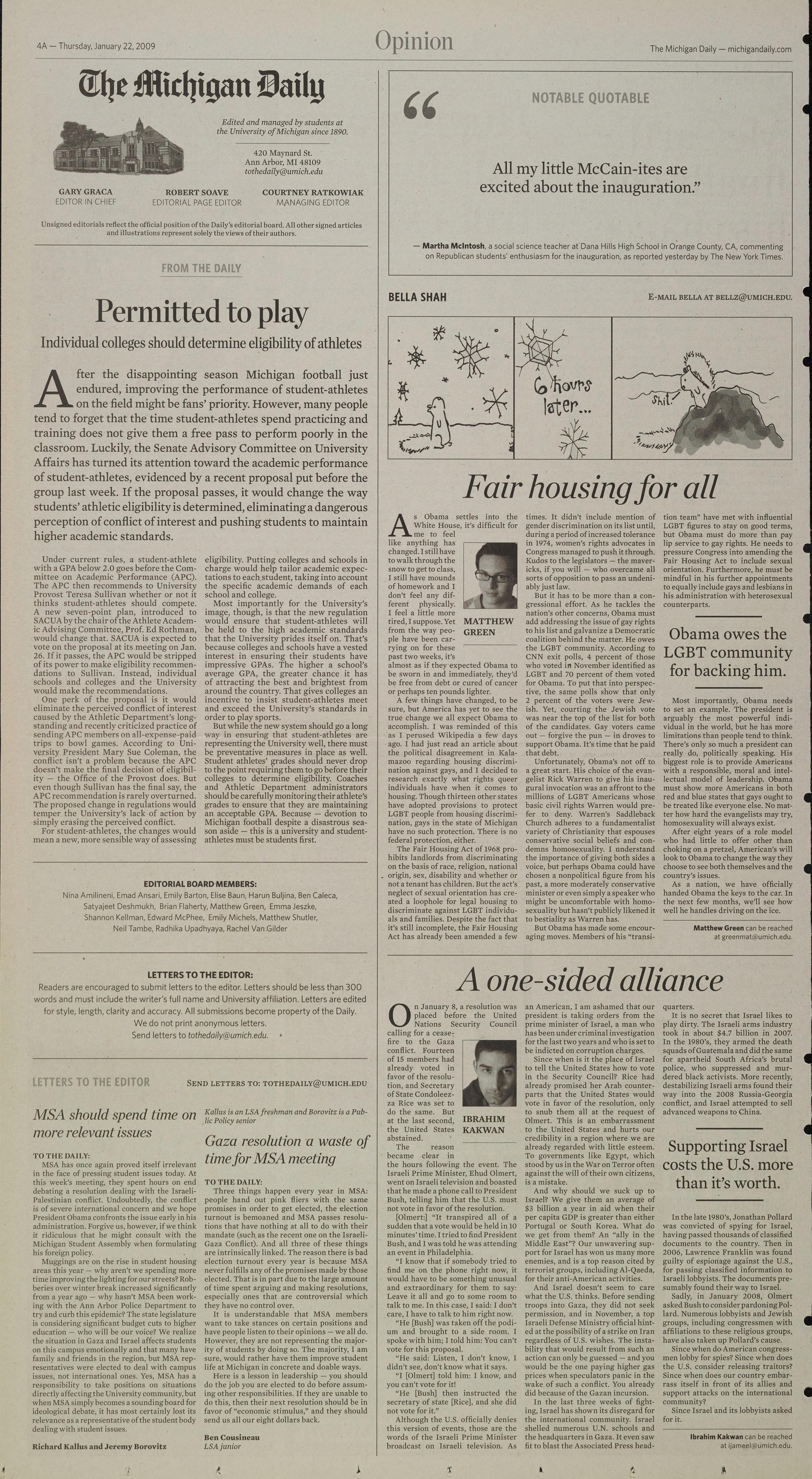 on Republican students' enthusiasm for the inauguration, as reported yesterday by The New York Times.