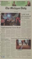 Ann Arbor resident Michelle Kinnucan (right, with flag) protests last night during a candlelight vigil on Main Street for victims of the violence in Gaza.