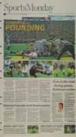 (Top) Redshirt sophomore running back Fitz Toussaint dives for a goal line touchdown against Eastern Michigan.