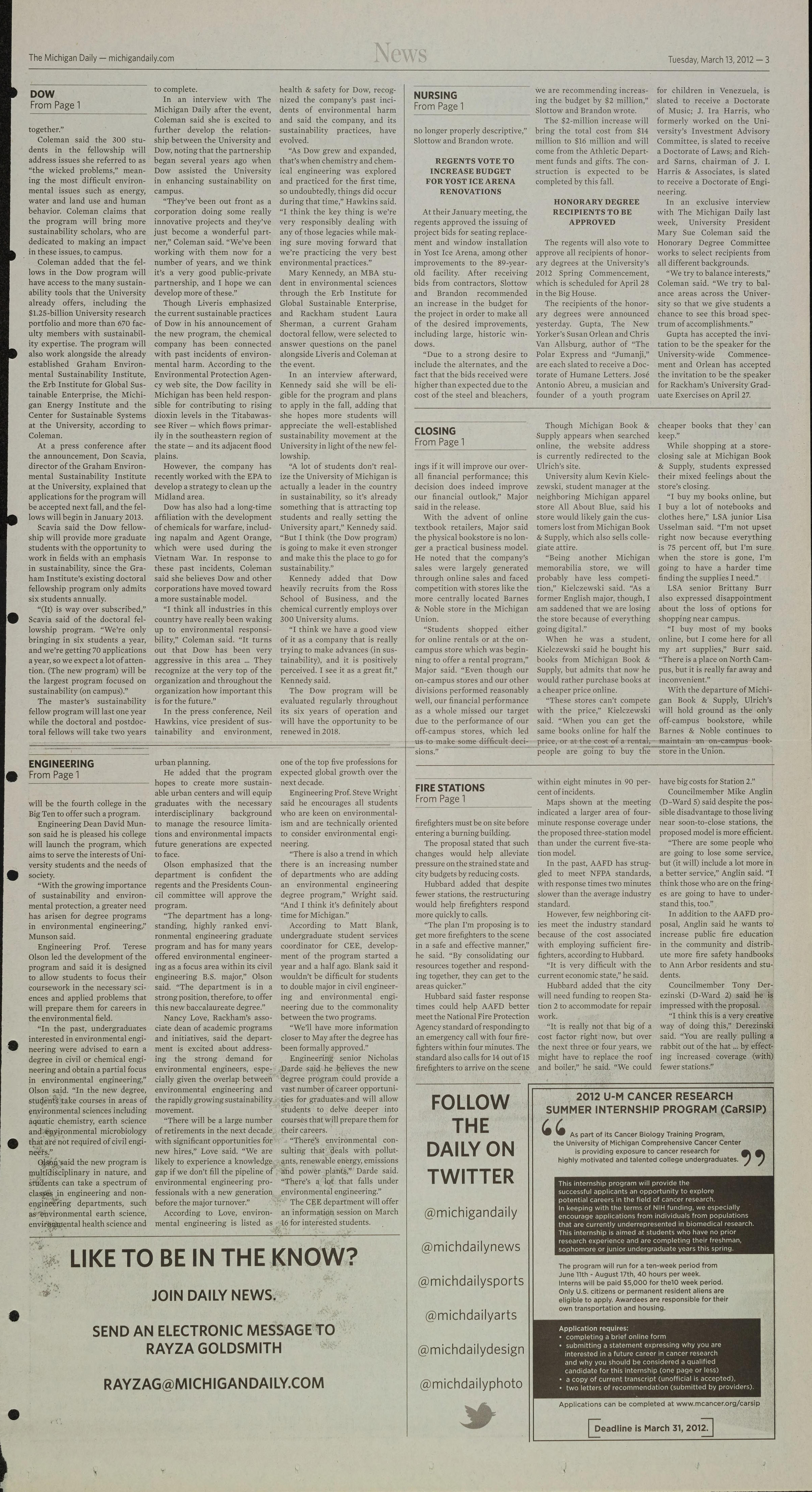 The Michigan Daily - michigandailycom Tuesday, March 13, 2012 - 3