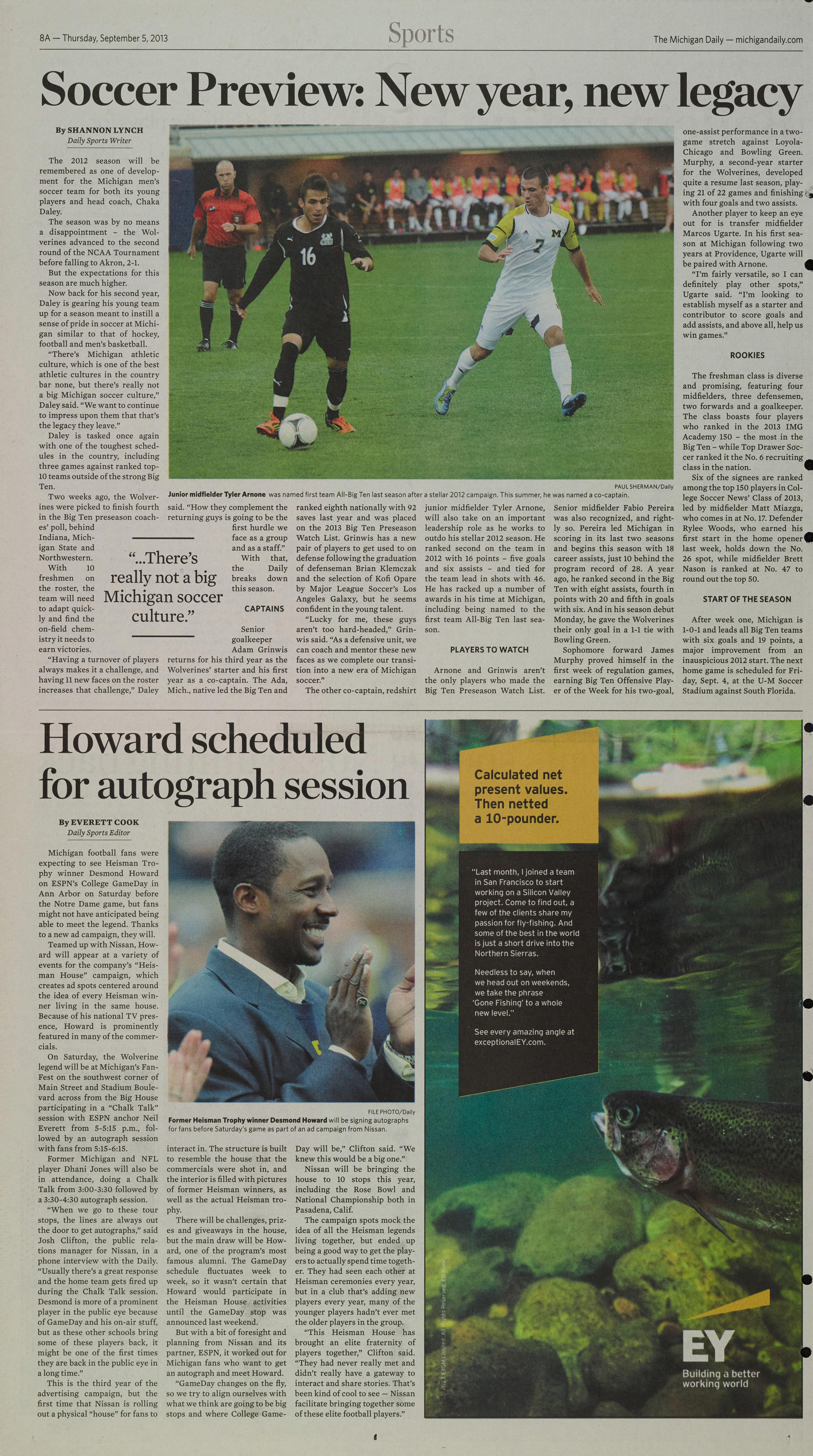 Two weeks ago, the Wolver- Junior midfielder Tyler Arnone was na