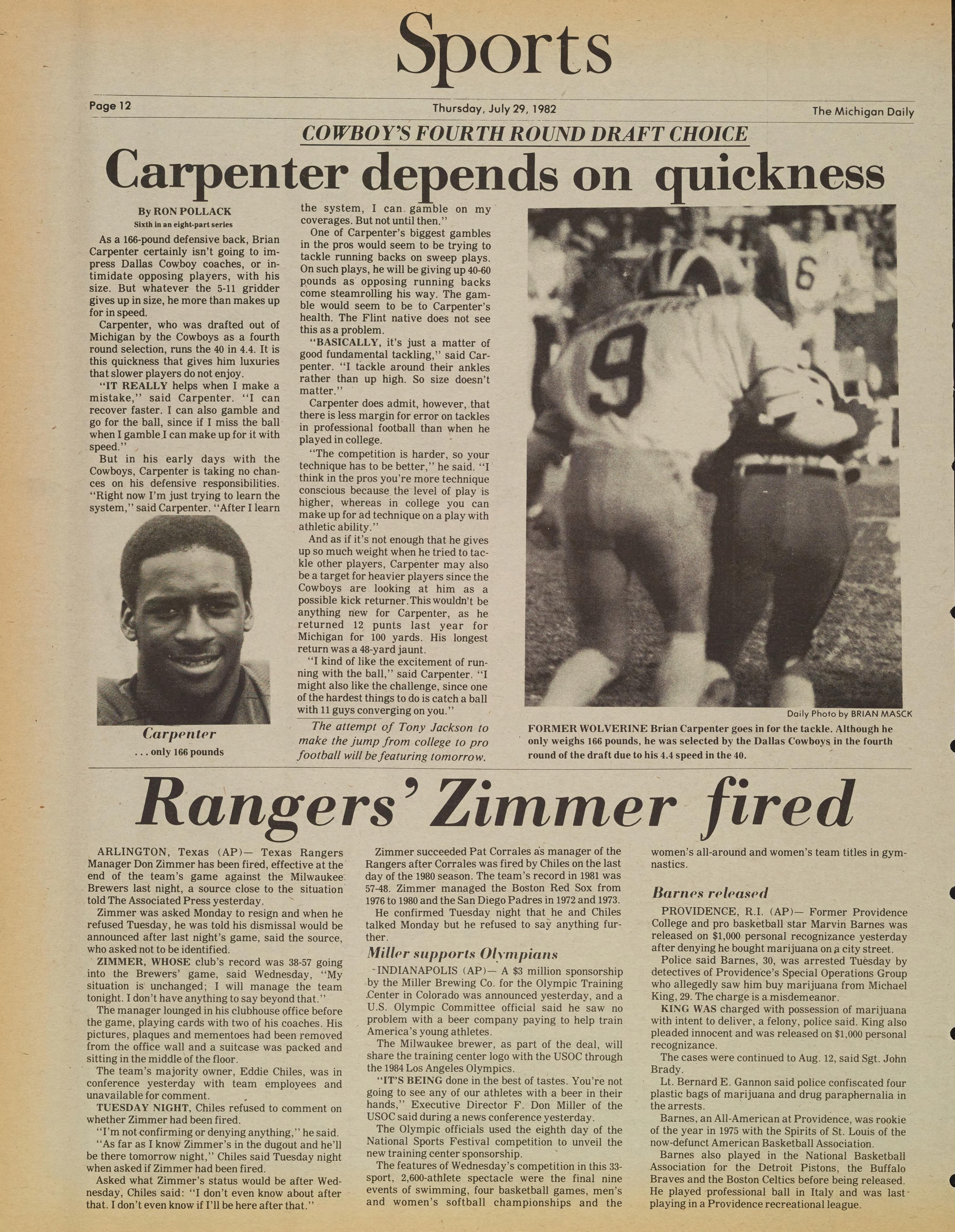 Carpenter certainly isn't going to im- tackle running backs on sweep plays.