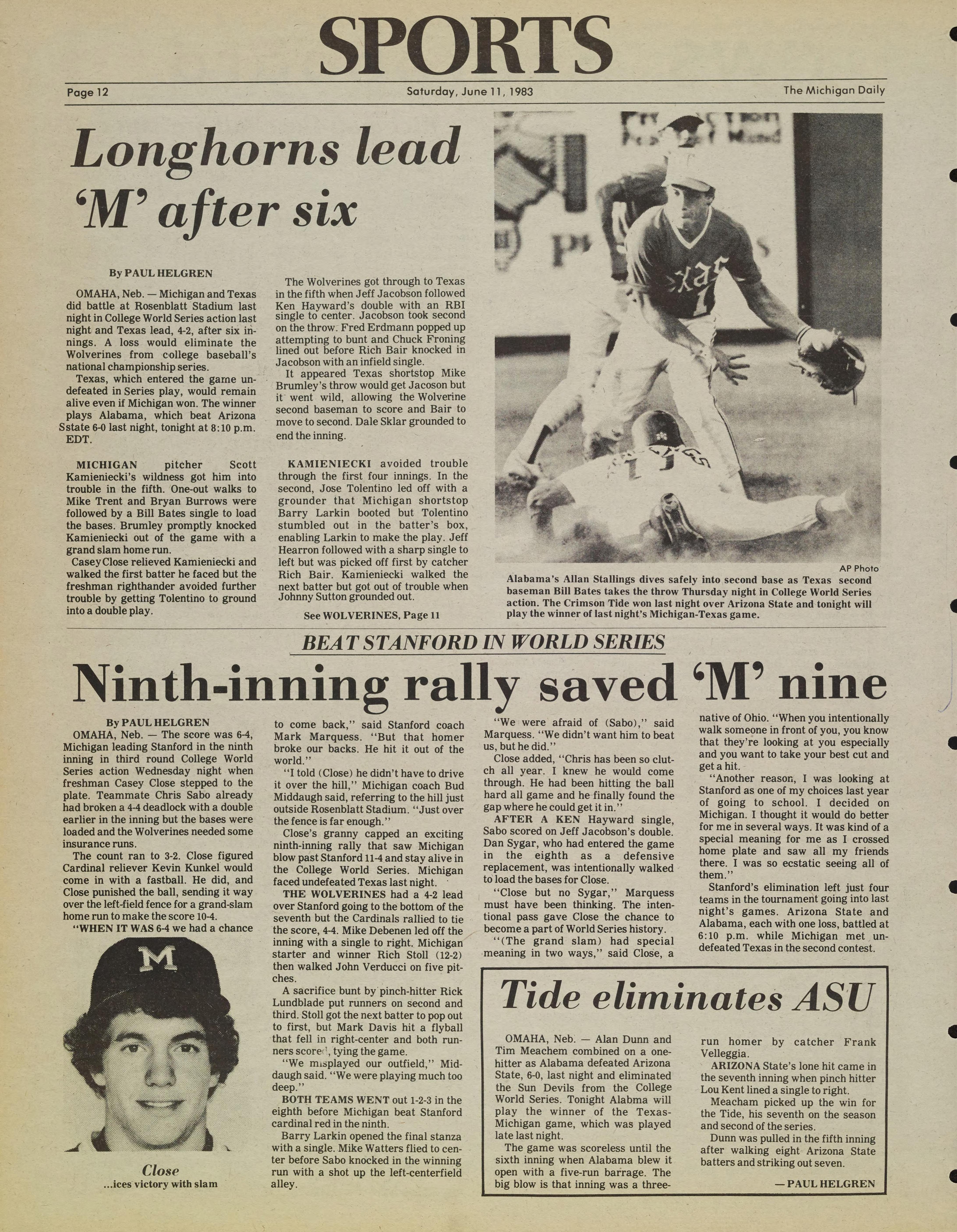 oaded and the Wolverines needed some Close's granny capped an exciting Sabo scored on Jeff Jacobson's double.