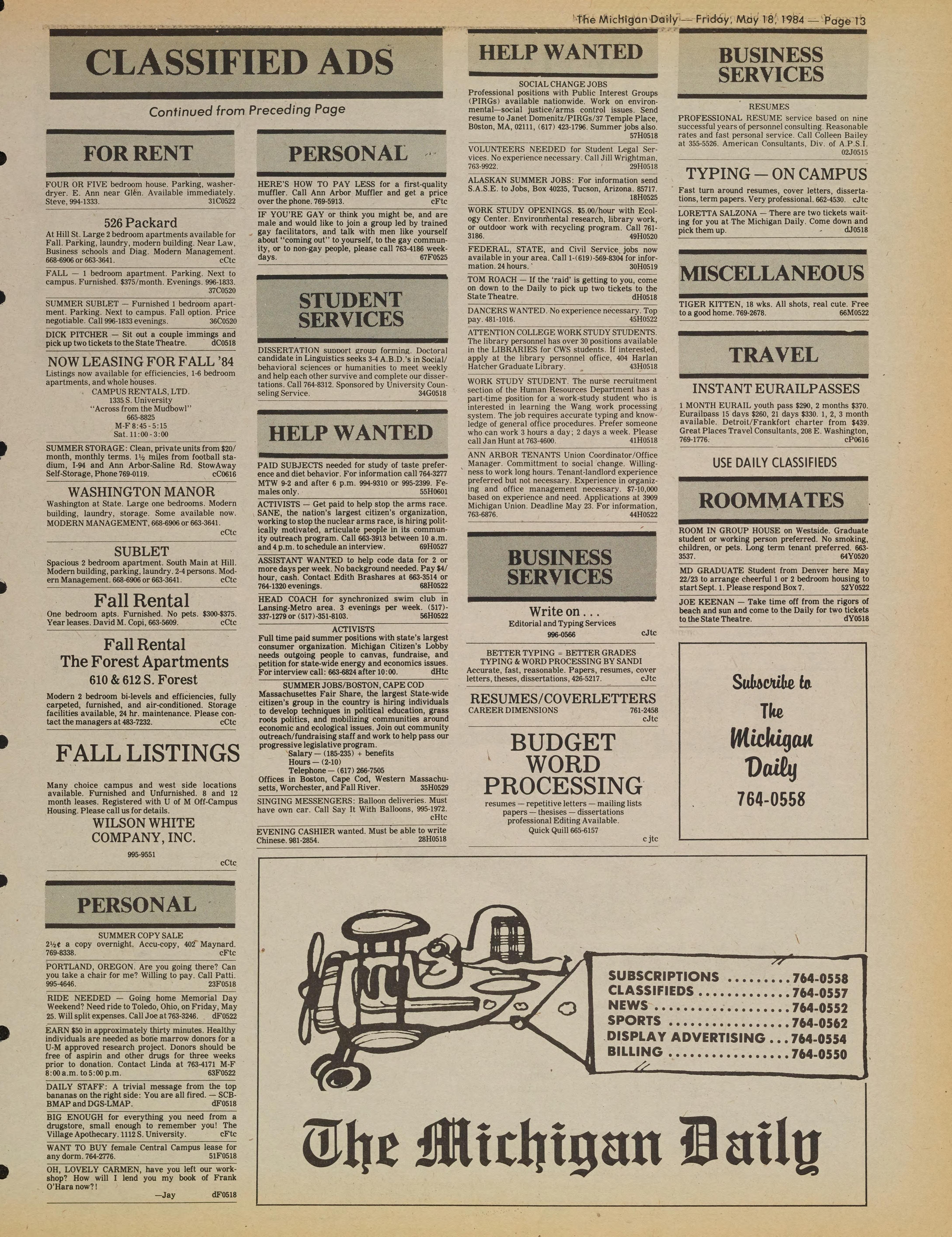 CLASSIFIEDS .......764-0557