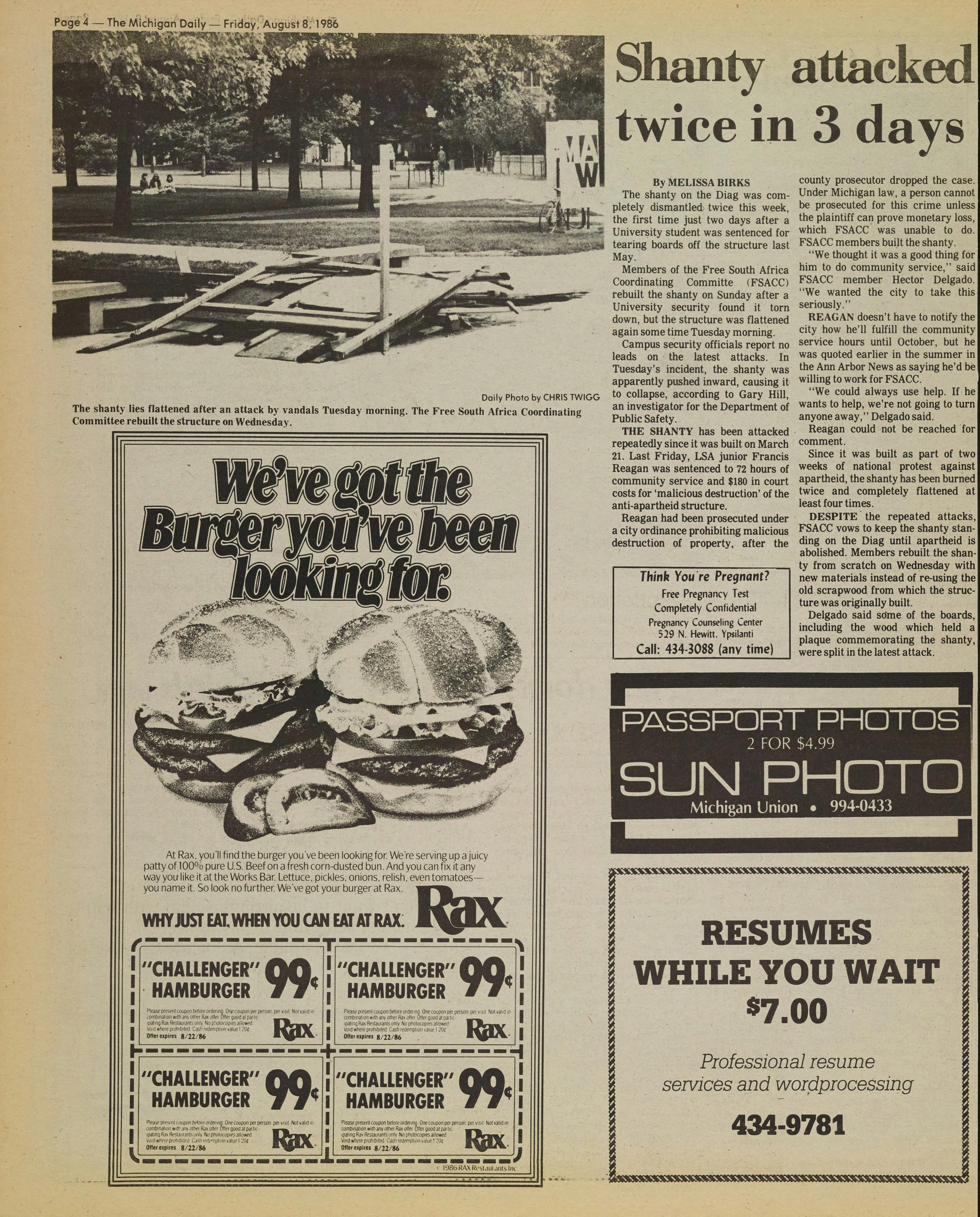 The shanty lies flattened after an attack by vandals Tuesday morning. The Free South Africa Coordinating
