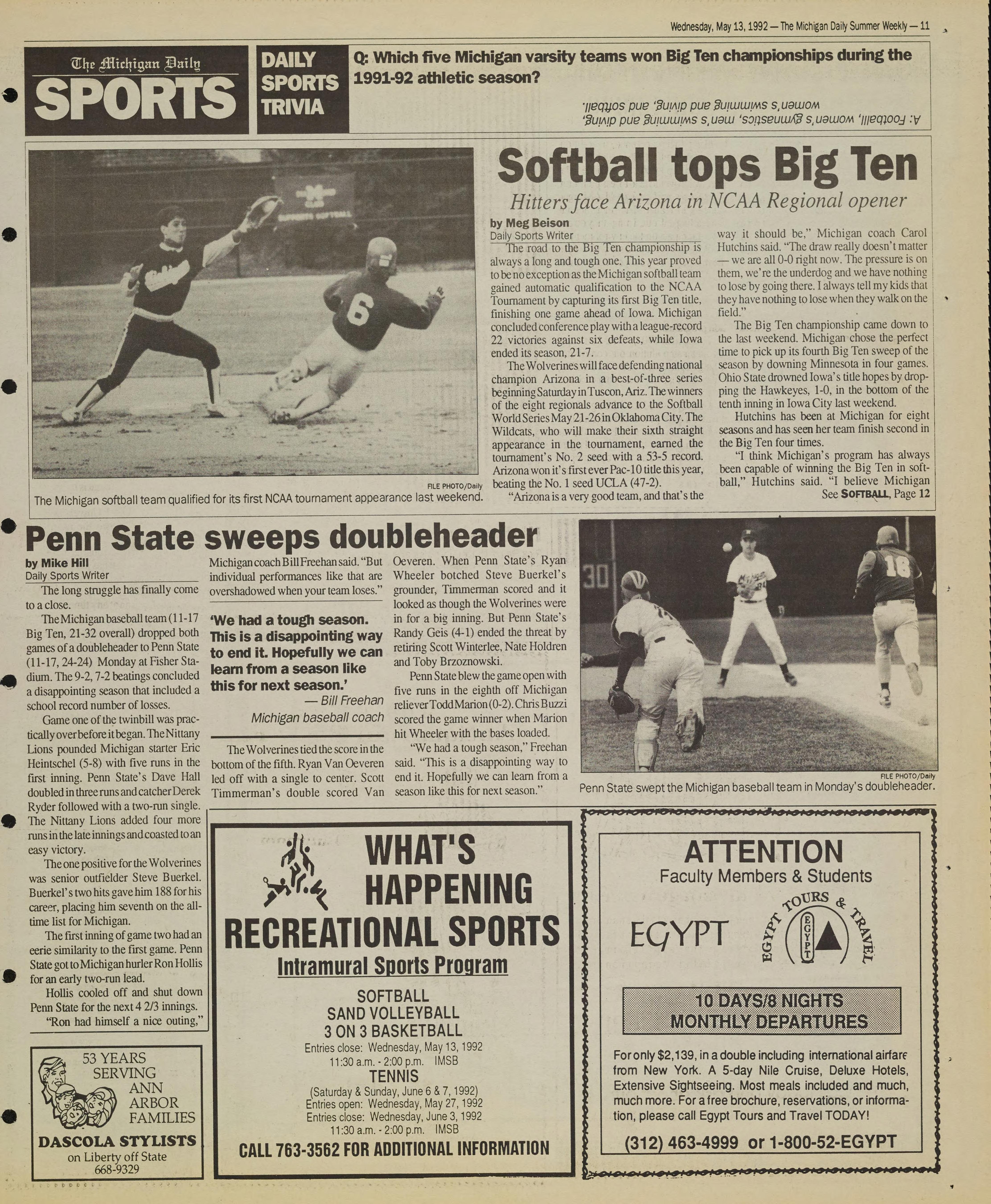 Wednesday, May 13, 1992 -The Michigan Daily Summer Weekly -11