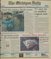 University students take advantage of the flooding on South State St. to have a little fun. The storm on