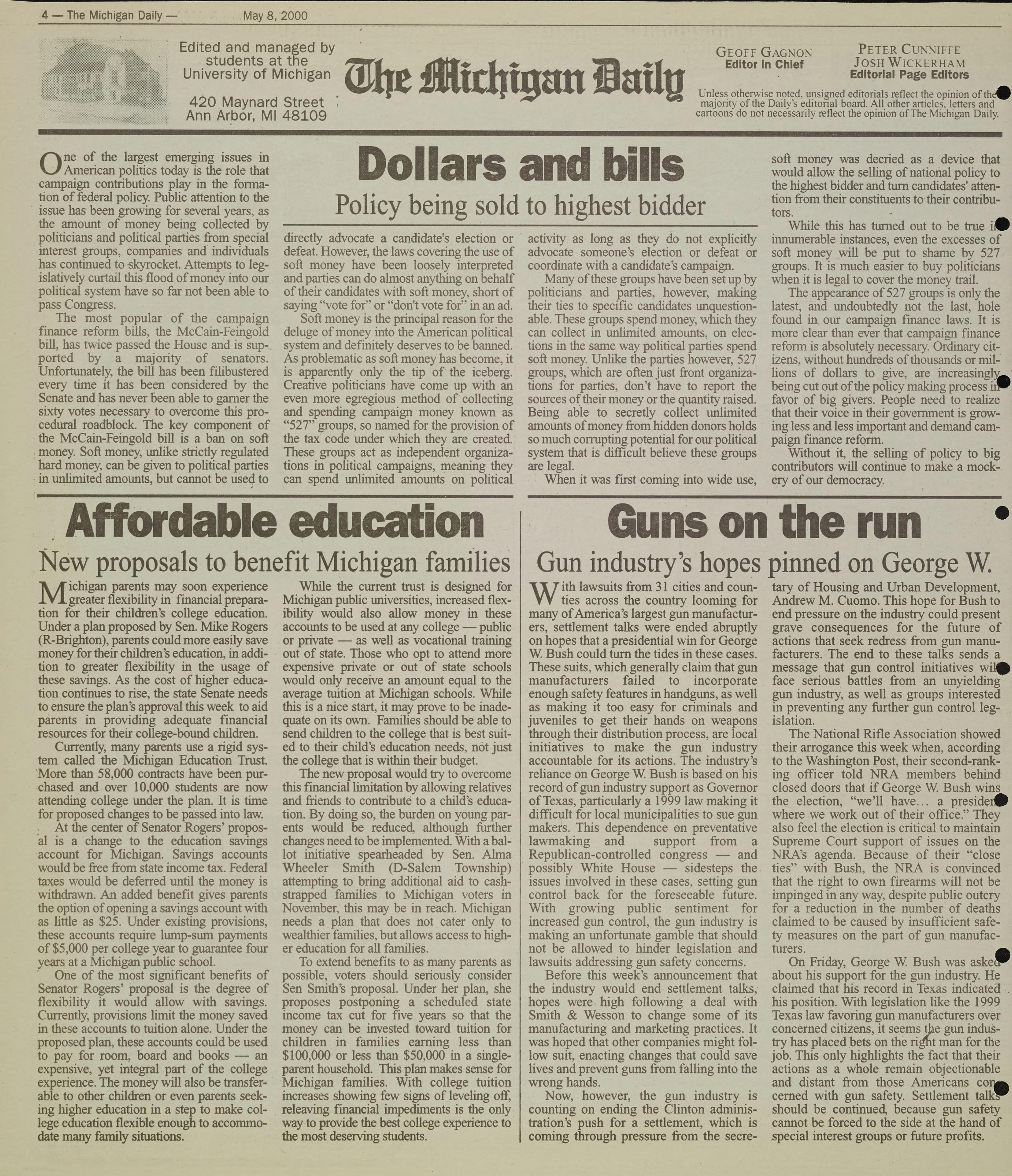 record of gun industry support as Governor closed doors that if George W. Bush wins