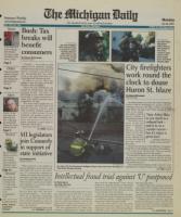 Ann Arbor City Fire Department firefighter Robert Tudor hoses down the flames on
