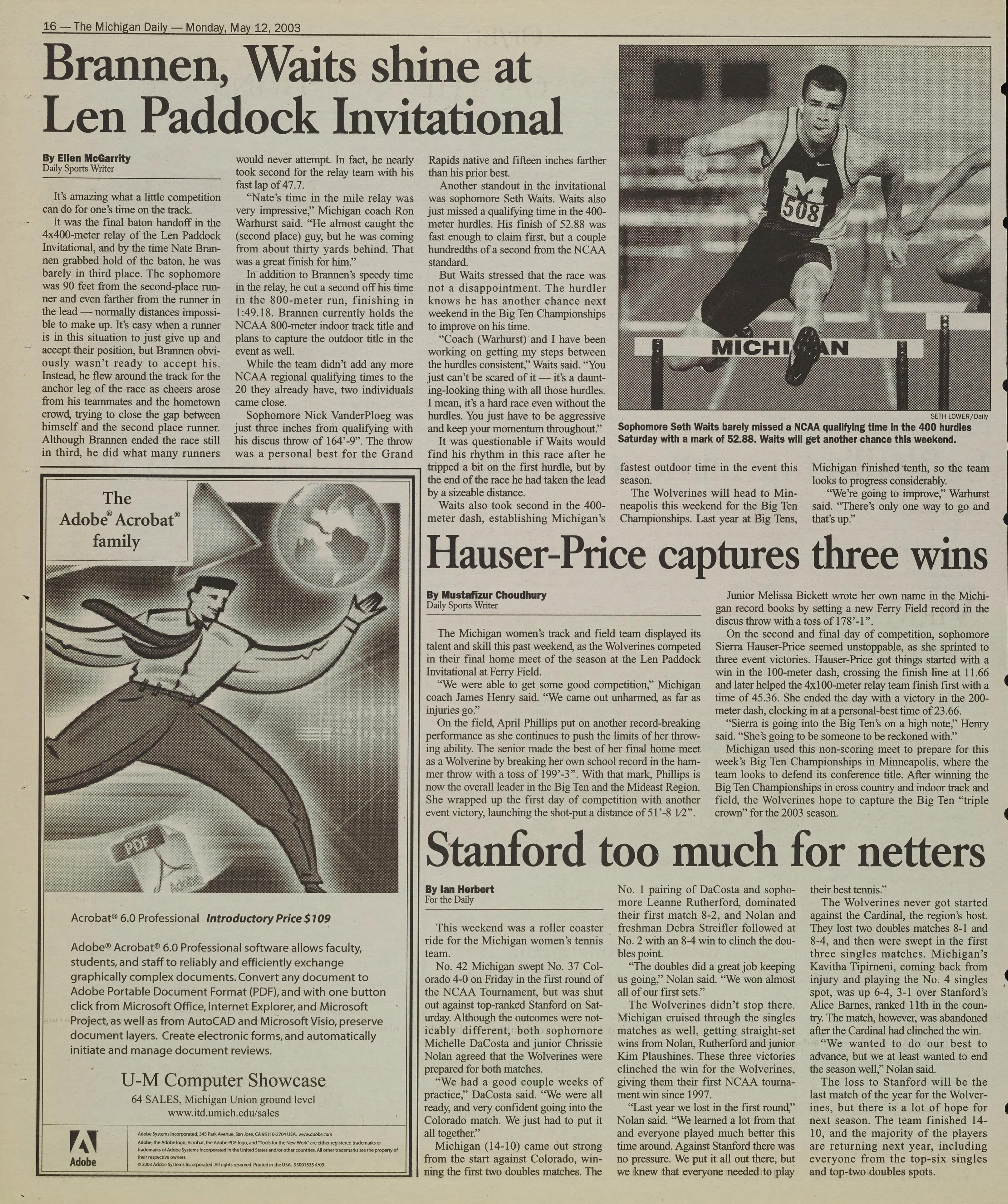 fastest outdoor time in the event this Michigan finished tenth, so the team