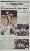 Above: The Michigan softball team holds up the NCAA championship trophy after beating UCLA 4-1 in the deciding game of the championship series.