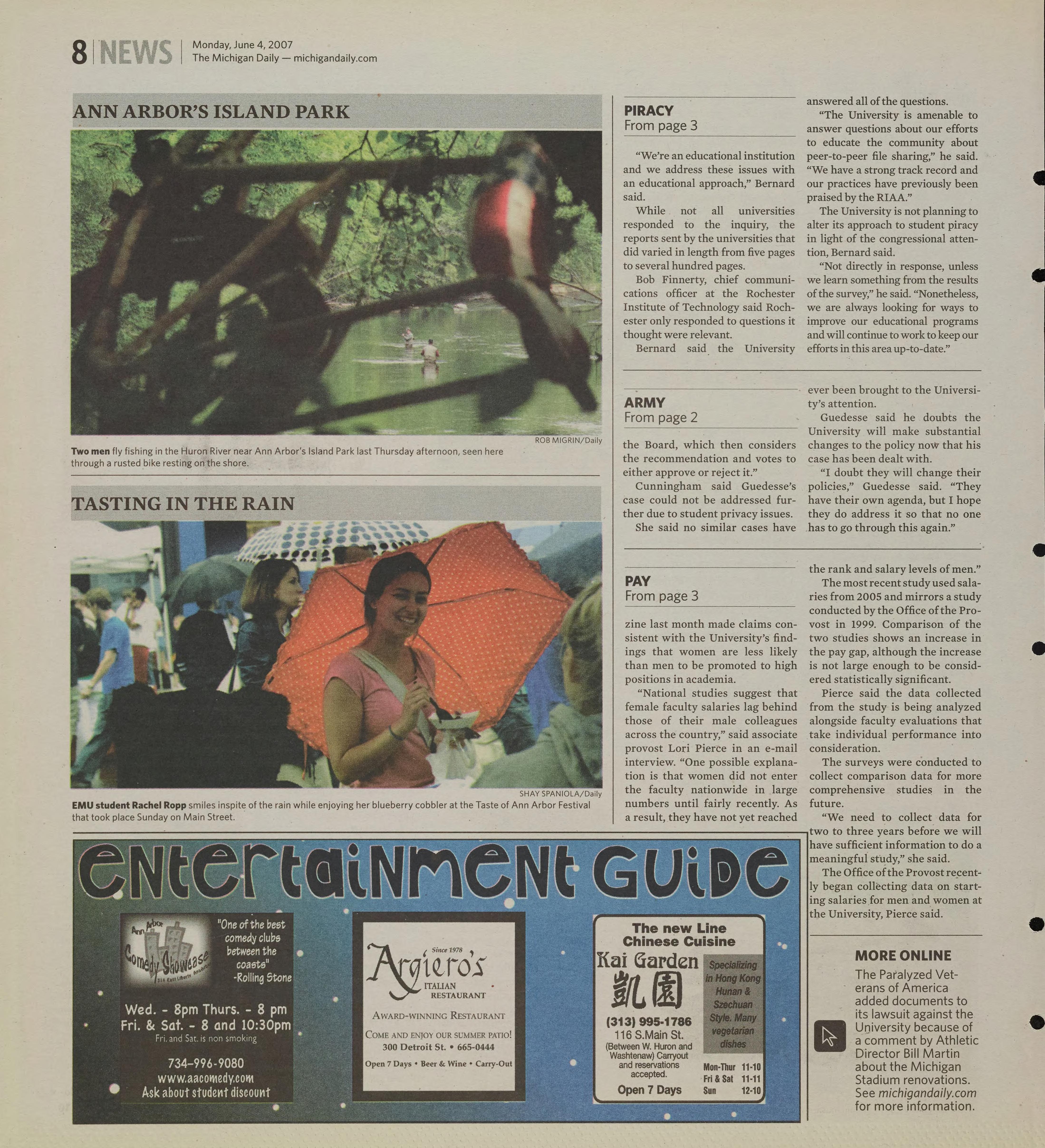 EMU student Rachel Ropp smiles inspite of the rain while enjoying her blueberry cobbler at the Taste of Ann Arbor Festival