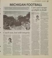 Lloyd Carr is carried off the field after Michigan beat Florida in the Capital One Bowl on Jan. 1 his last game as Wolverine coach-