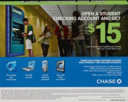 1. Offer expires 10/31/08. Limit one consumer checking account-related reward/premium per customer, per calendar year. Present flyer to a banker when opening a Chase College Checking account To qualify for the $15 bonus, you must make five qualifying purchases