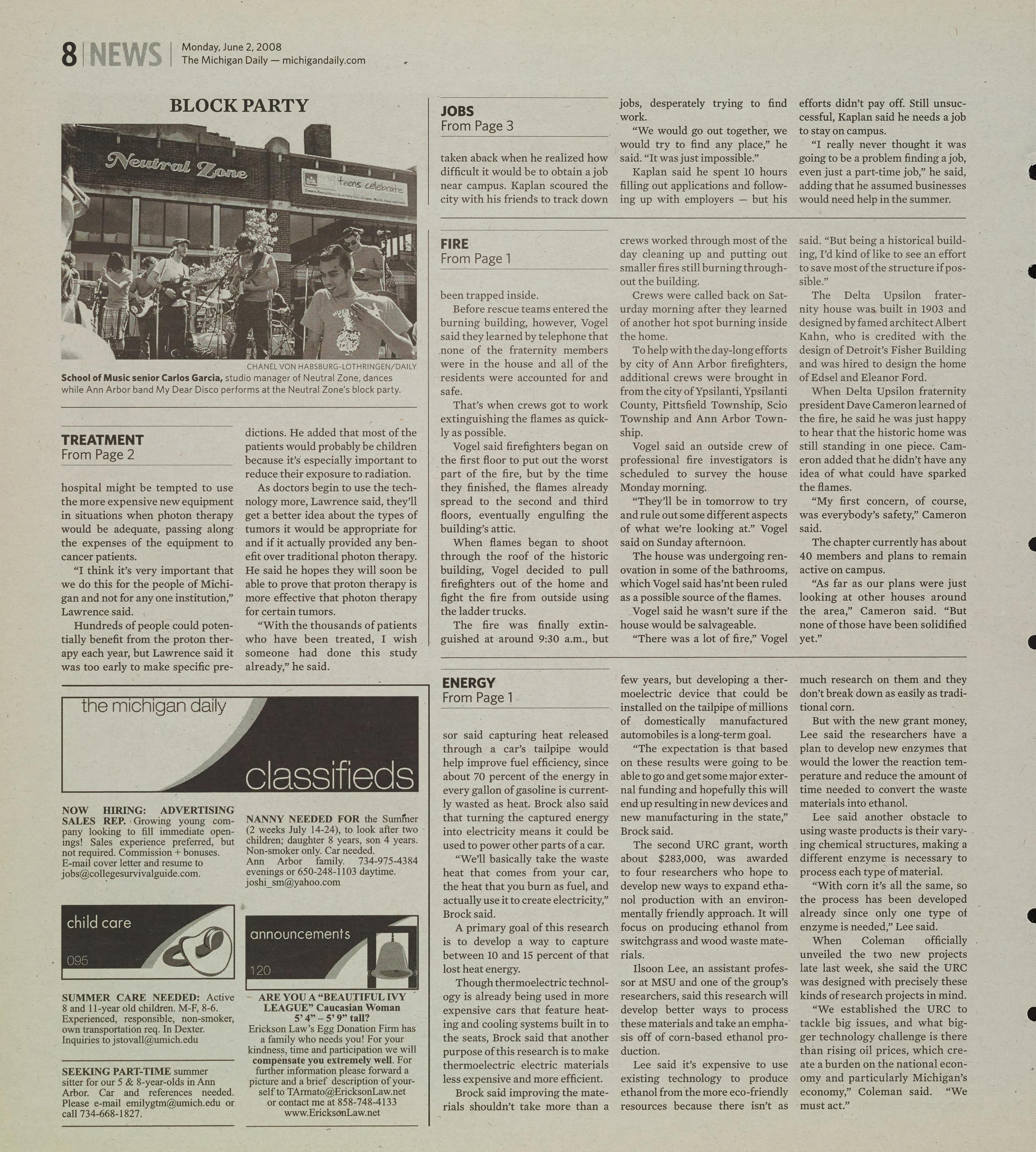 while Ann Arbor band My Dear Disco performs at the Neutral Zone's block party.