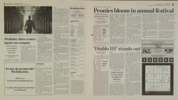 Andy Palms walks through the modular data center as he explains the plan to use outside air to cool the server.
