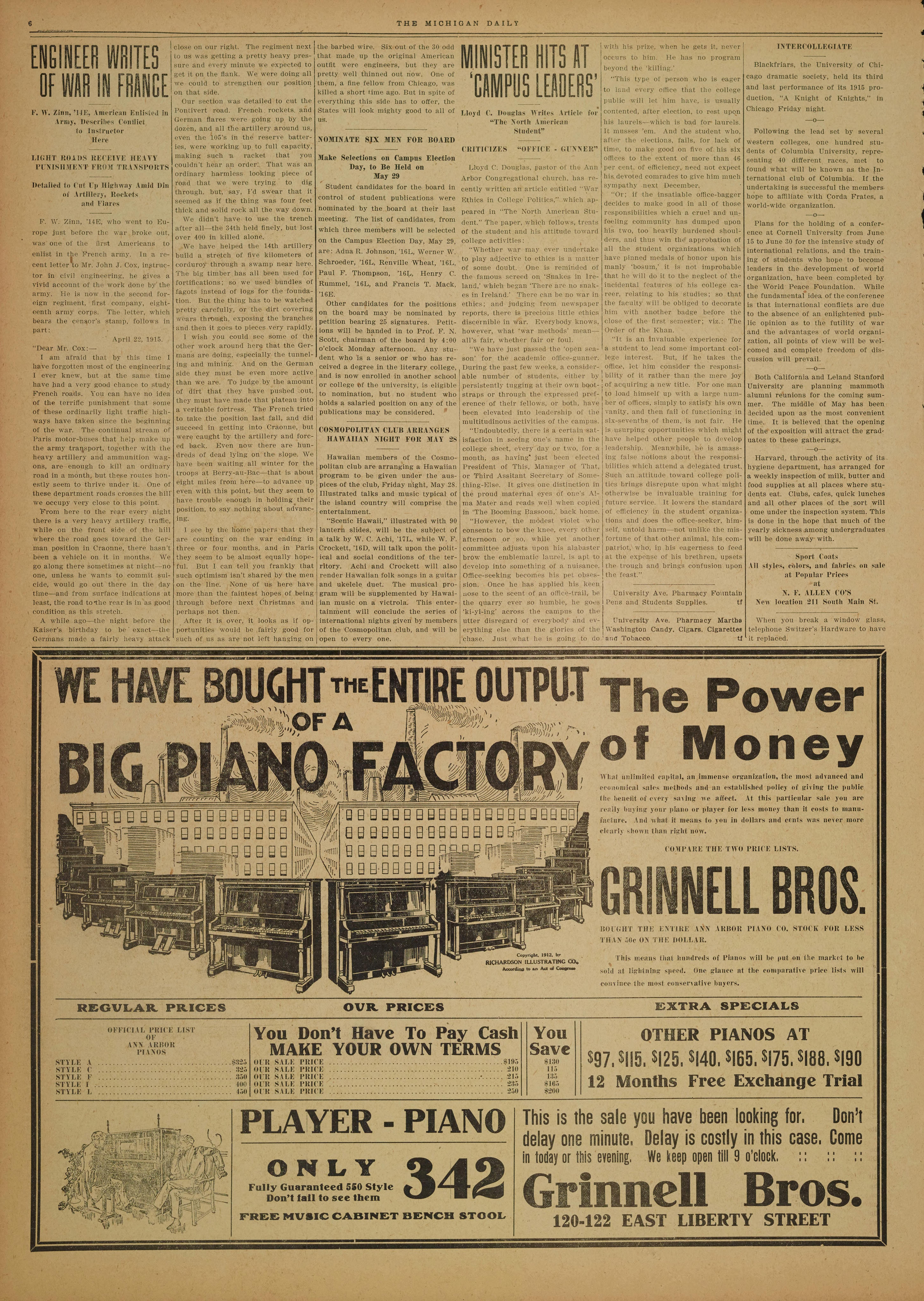 P. W. Zinn, '14E, who went to Eu-