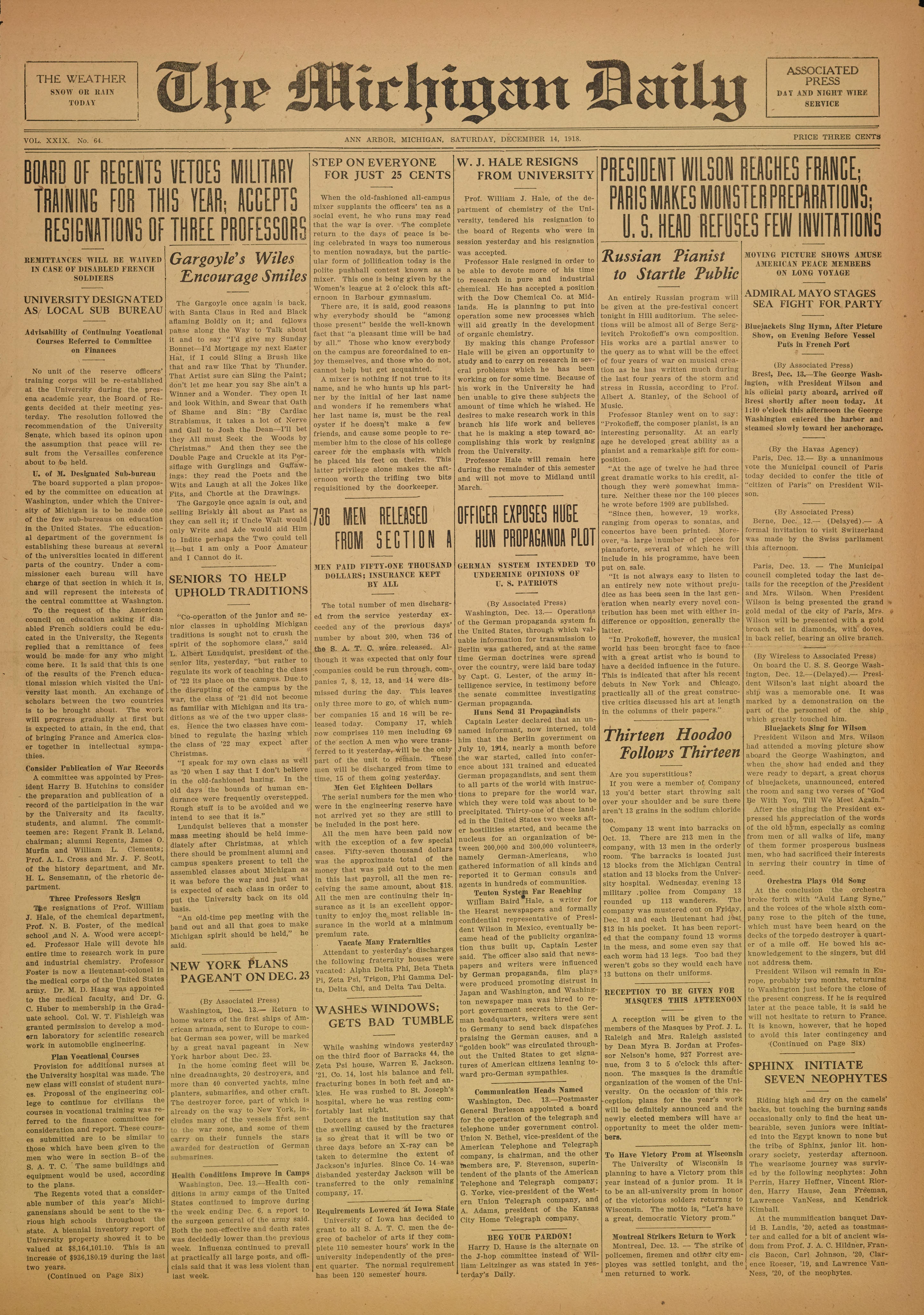 VOL. XXIX. No. 64. ANN ARBOR, MICHIGAN, SATURDAY, DECEMBER 14, 1918. PRICE THREE CENTS