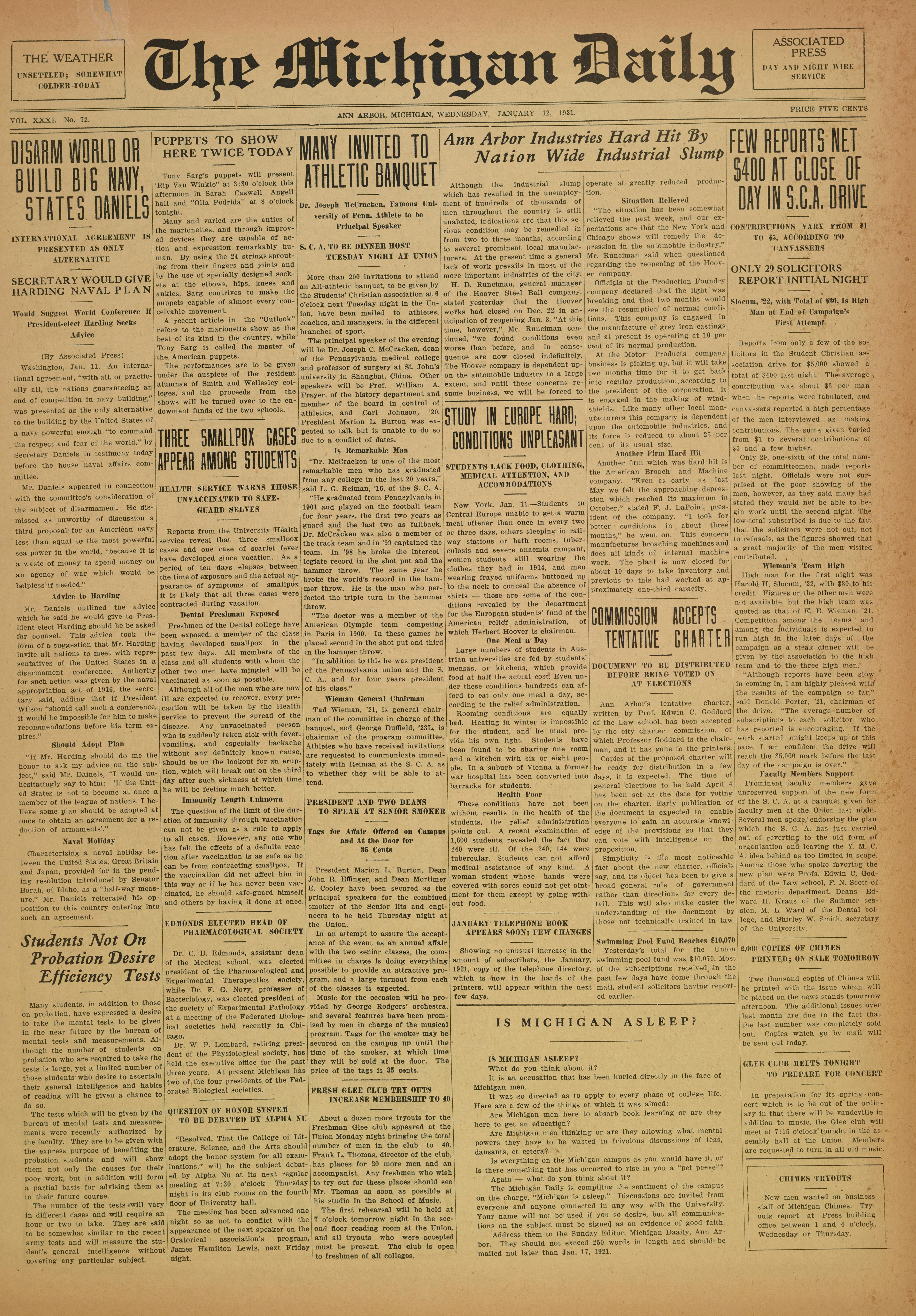 VOL. XXXI. No. 72. ANN ARBOR, MICHIGAN, WEDNESDAY, JANUARY 12, 1921. PRICE FIVE CENTS