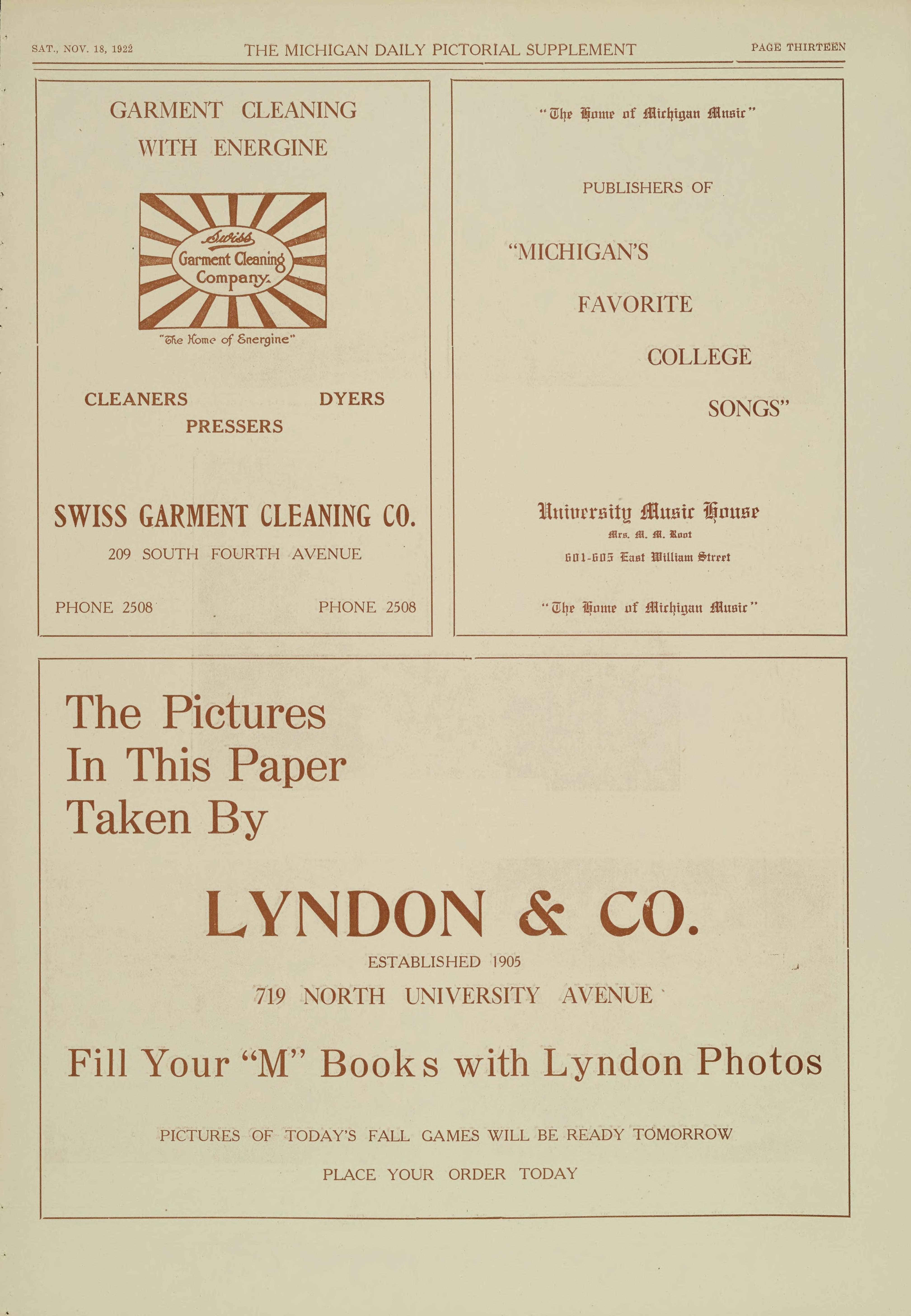 SAT., NOV 18, 1922 TI-IL MICHIGAN DAILY PICTORIAL SUPPLEMENT PAGF THJRT]2F~N