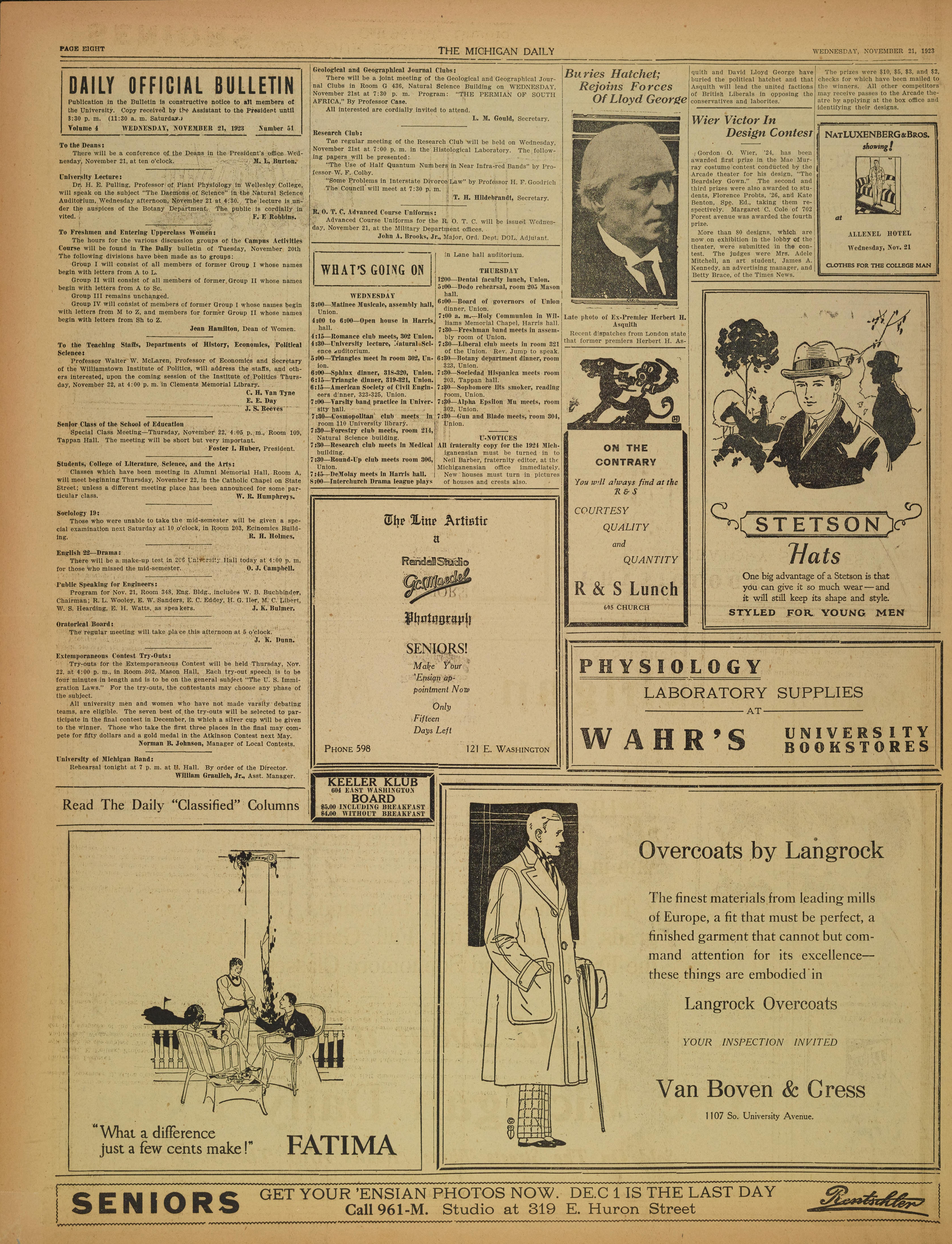 7:30-Research. club meets in Xedical All fraternity copy for the 1924 31ich-