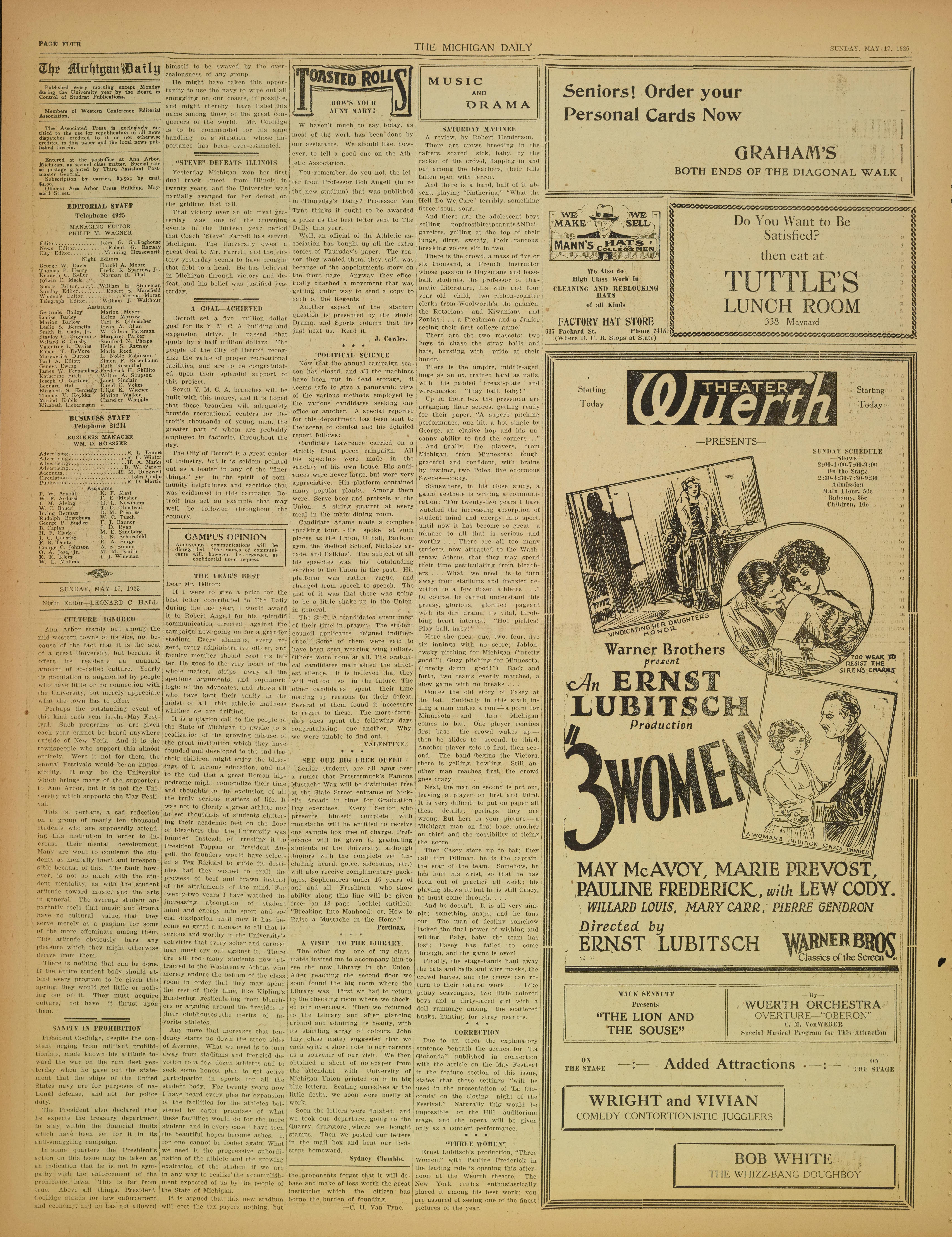 Editor............John G. Garlnghouse Michigan. The University owes a sociation has bought up all the extra lungs, dirty, sweaty, their raucous,