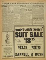 ing on Coach Steve Farrell's track as one of the strongest coast nines, in the seventh inning, held Michi-