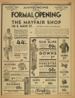 this opening a memorable event. We urge that you shop at the Mayfair this Saturday!