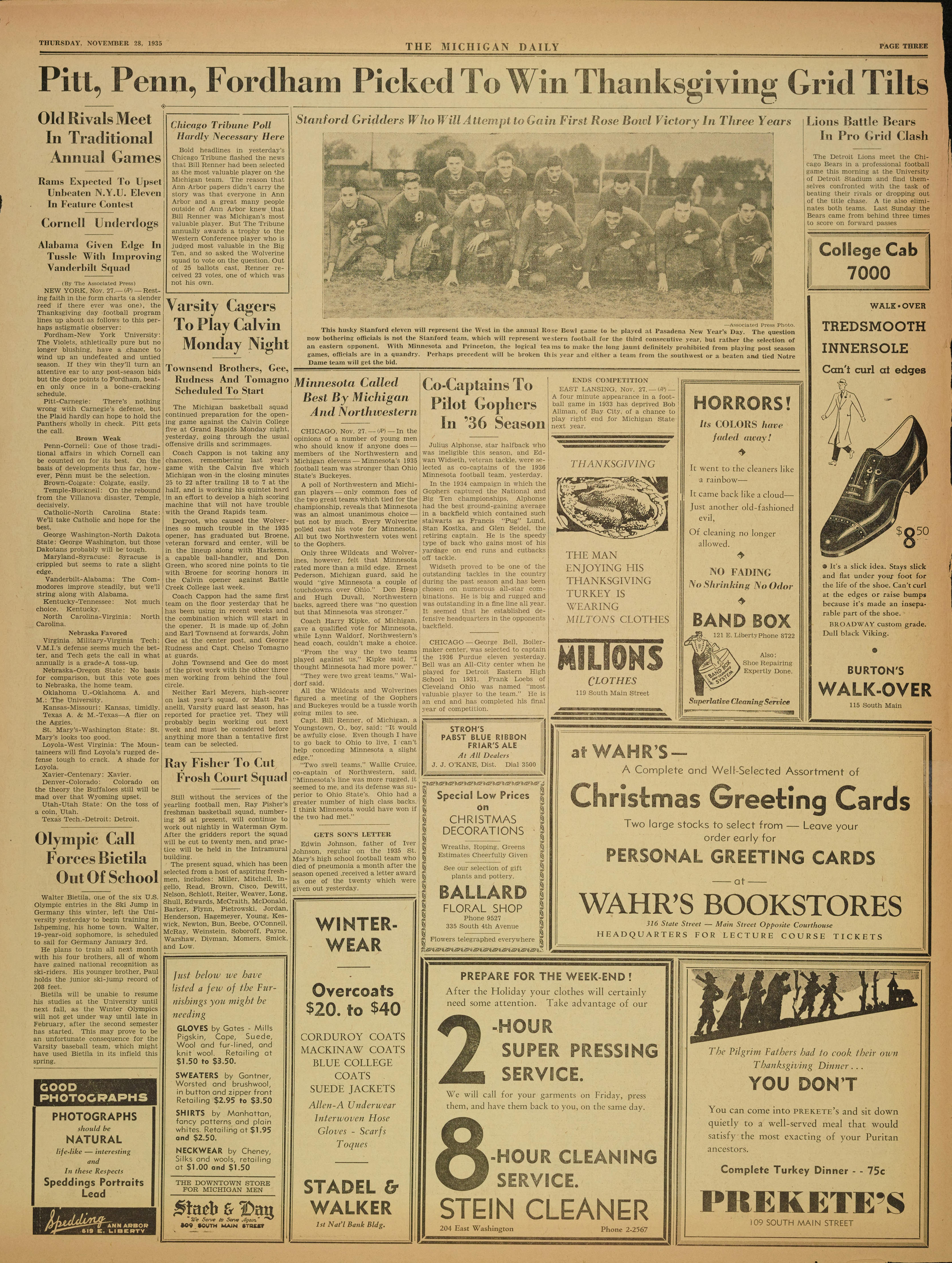 Pitt, Penn, Fordham Picked To in Thanksgiving Gri