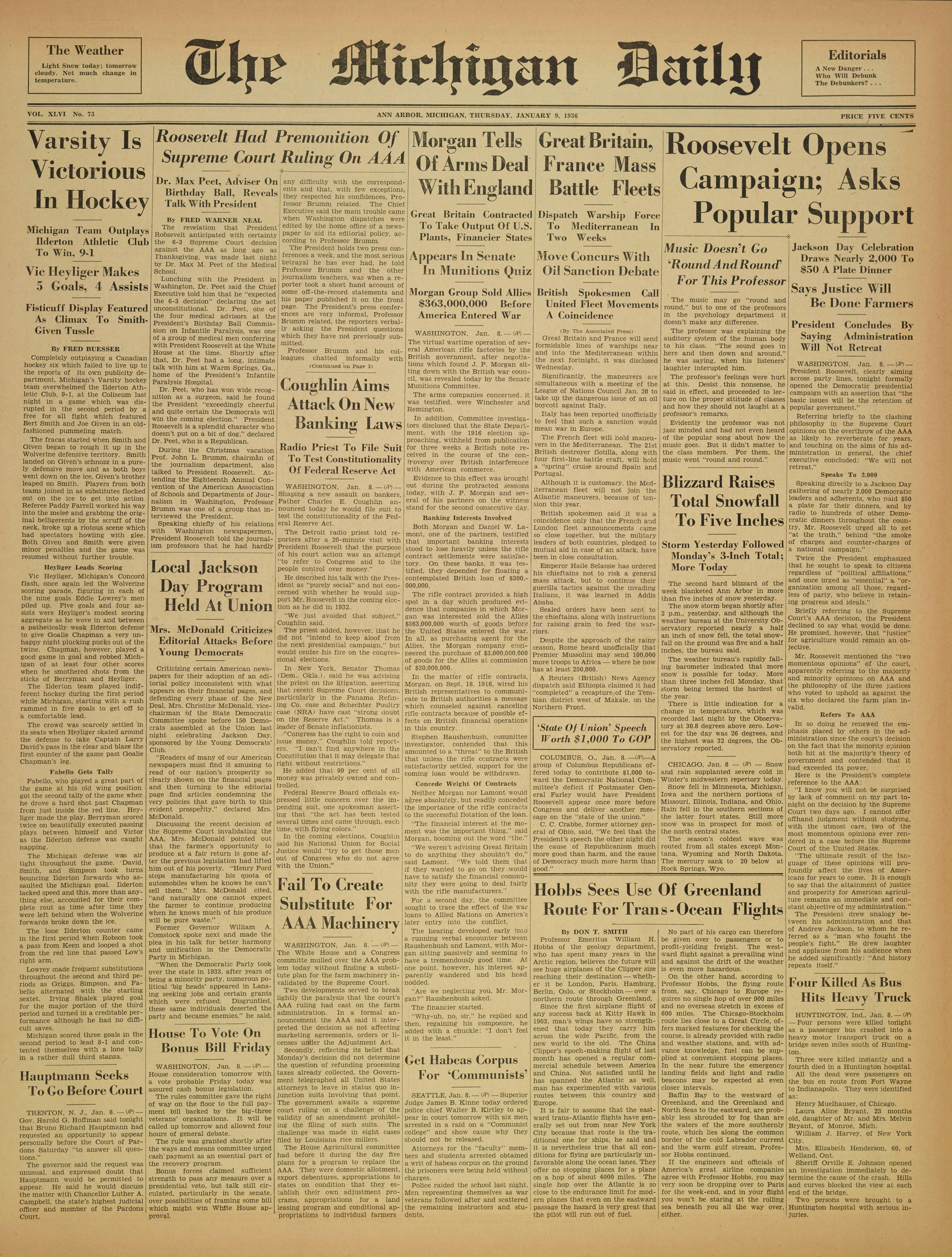 VOL. XLVI No. 73 ANN ARBOR, MICHIGAN, THURSDAY, JANUARY 9, 1936