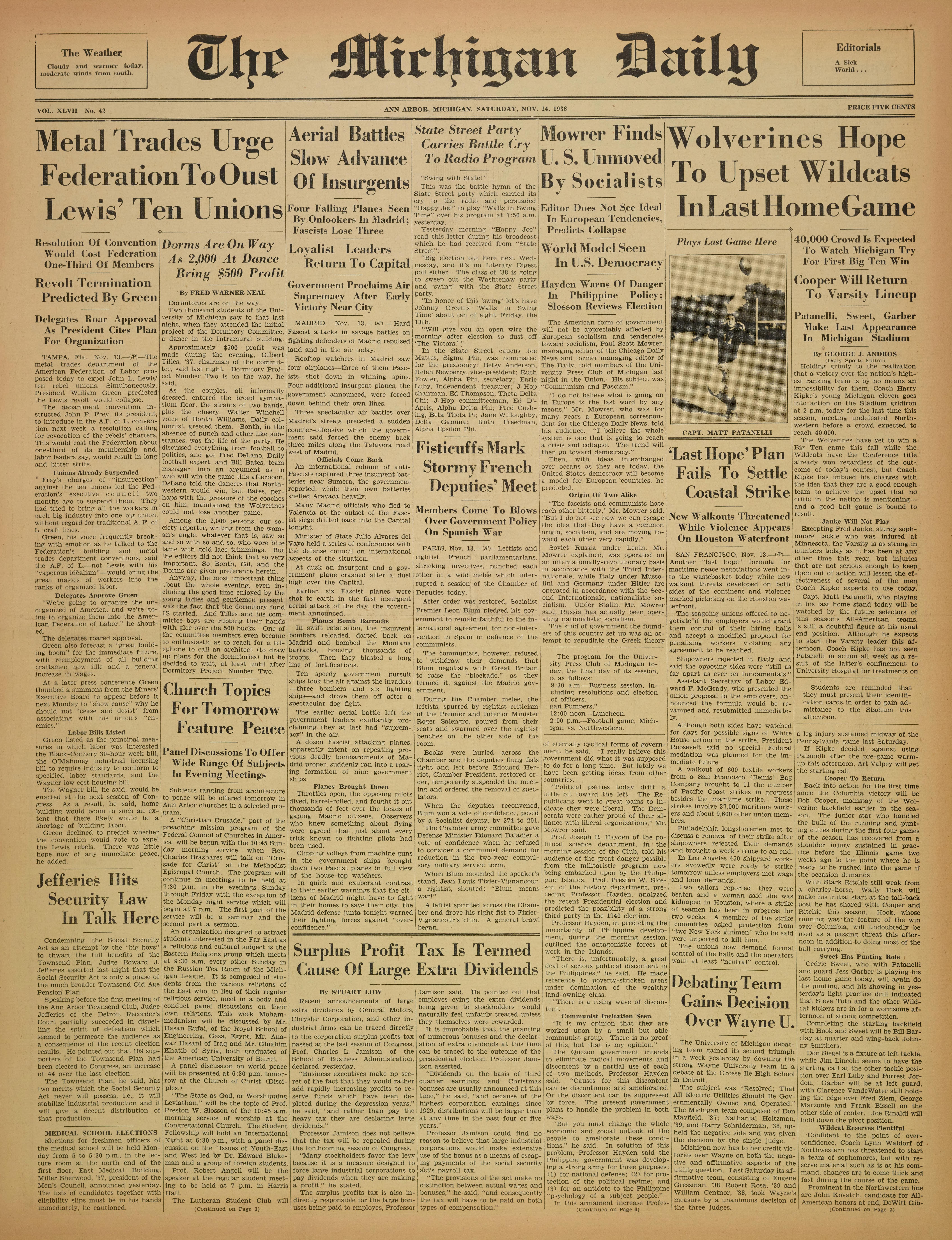 VOL. XLVII No. 42 ANN ARBOR, MICHIGAN SATURDAY, NOV. 14, 1936