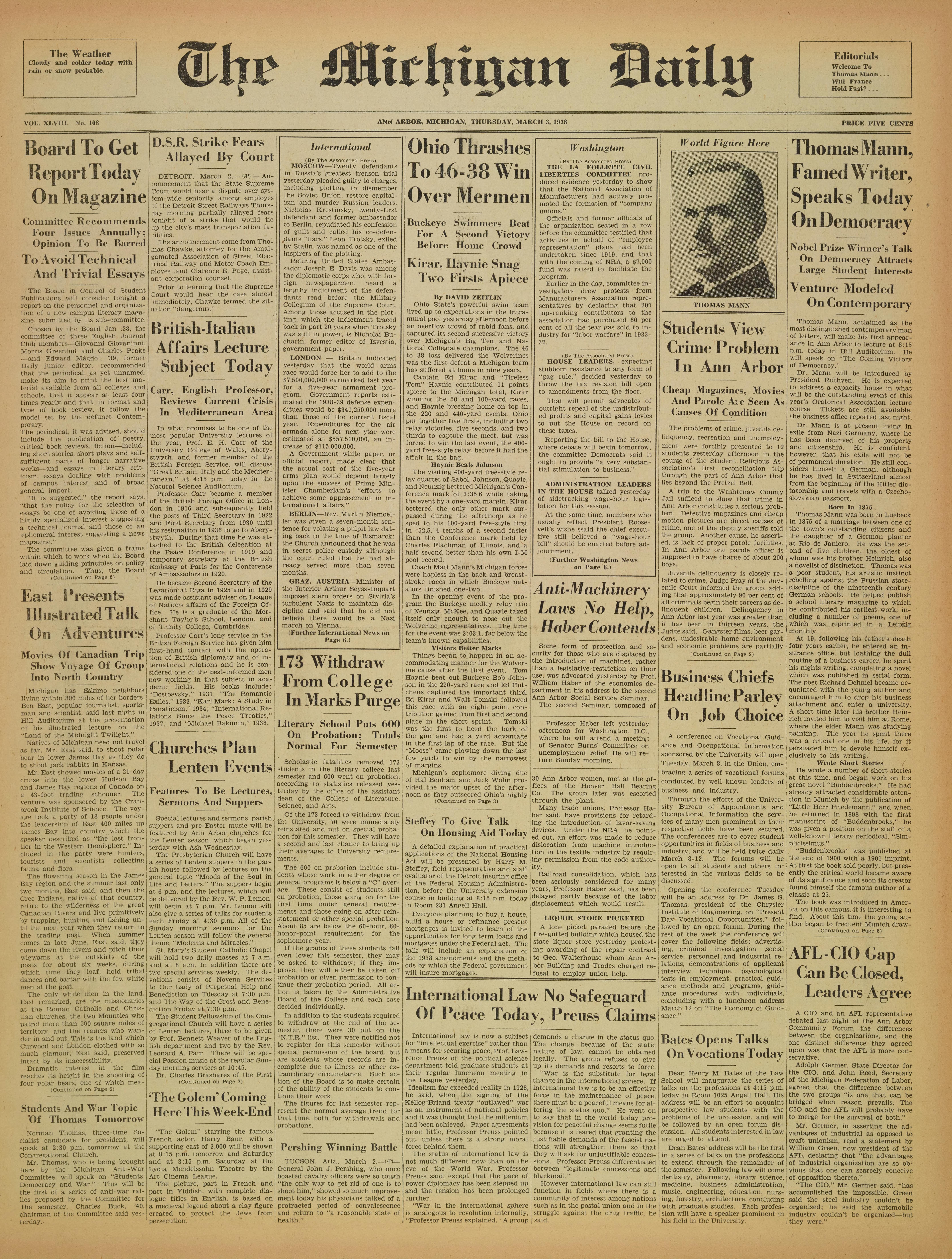 VOL. XLVIII. No. 108 ANN ARBOR, MICHiGAN, THURSDAY, MARCH 3, 1938