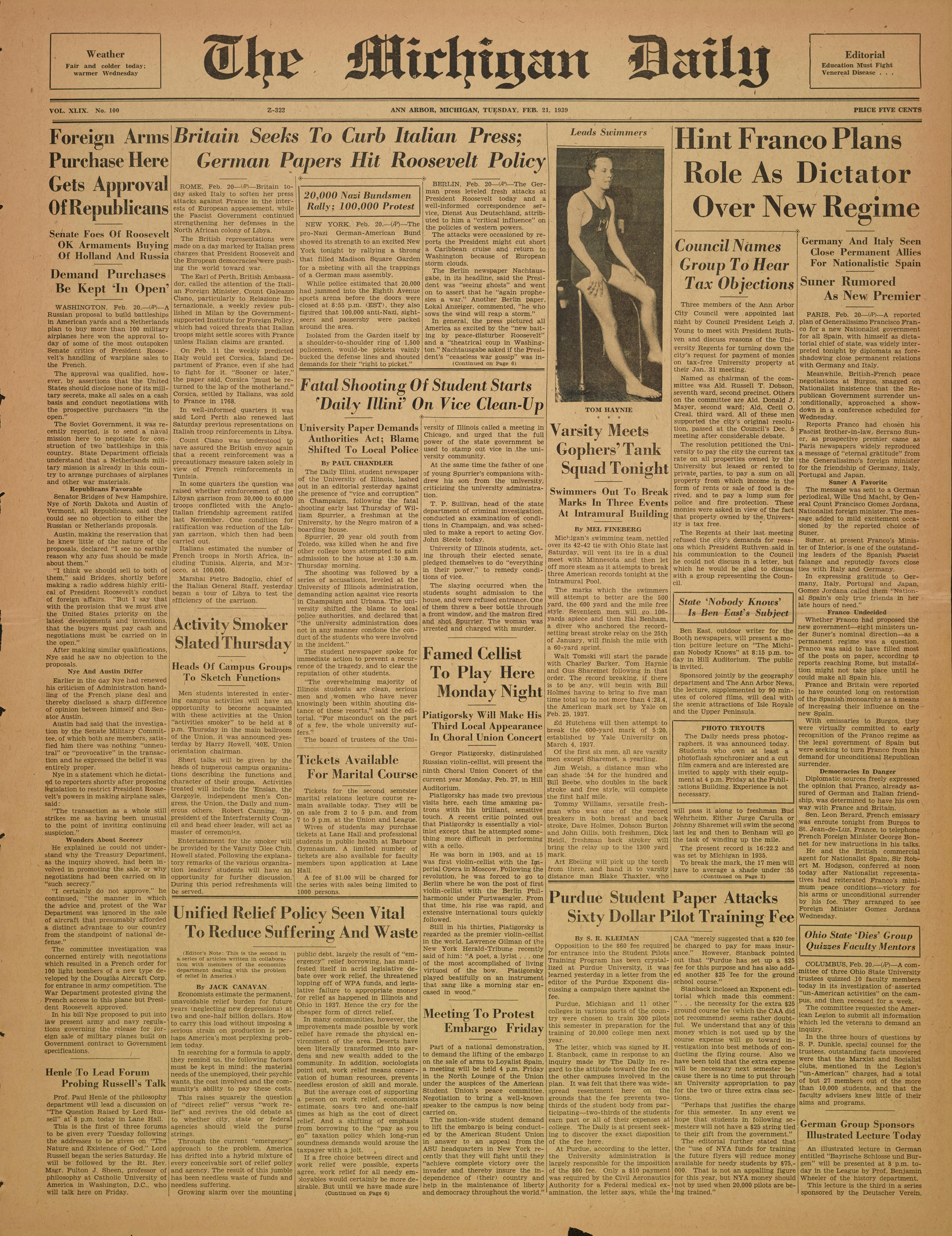 ANN ARBOR, MICHIGAN, TUESDAY, FEB. 21, 1939
