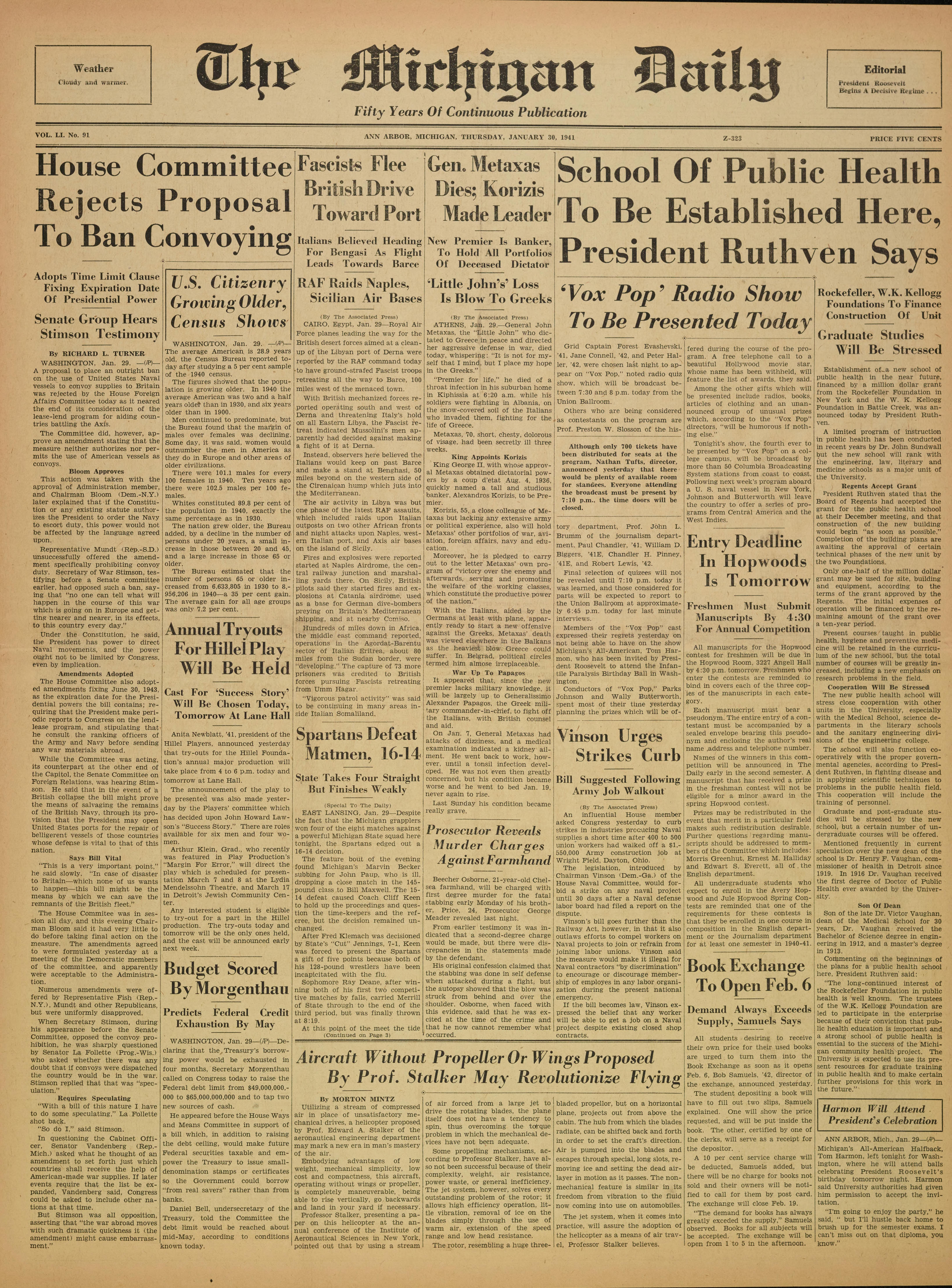 VOL. LI. No. 91 ANN ARBOR, MICHIGAN, THURSDAY, JANUARY 30, 1941 Z-323