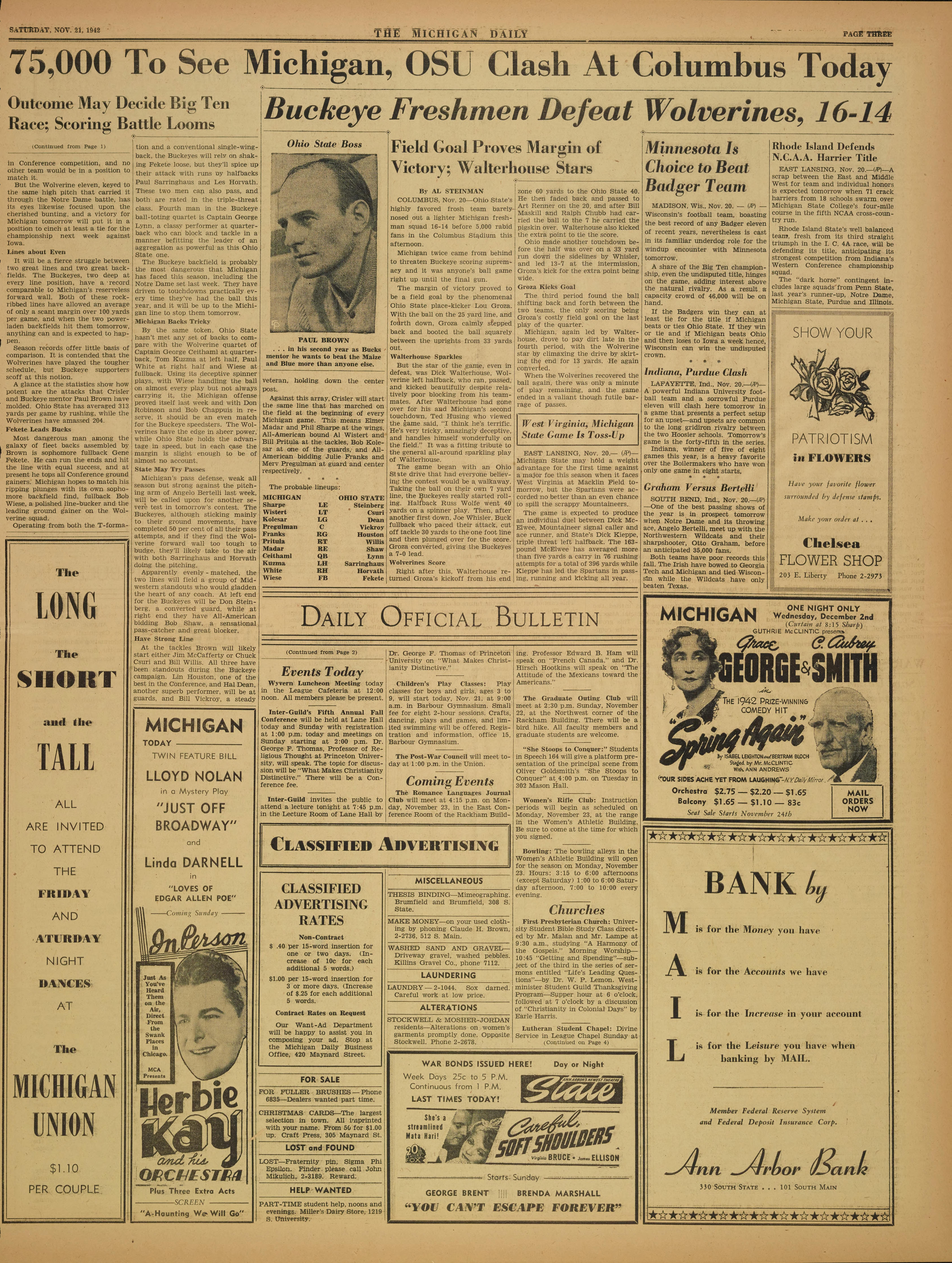 Buckeye Freshmen Defeat Wolverines, 16-14