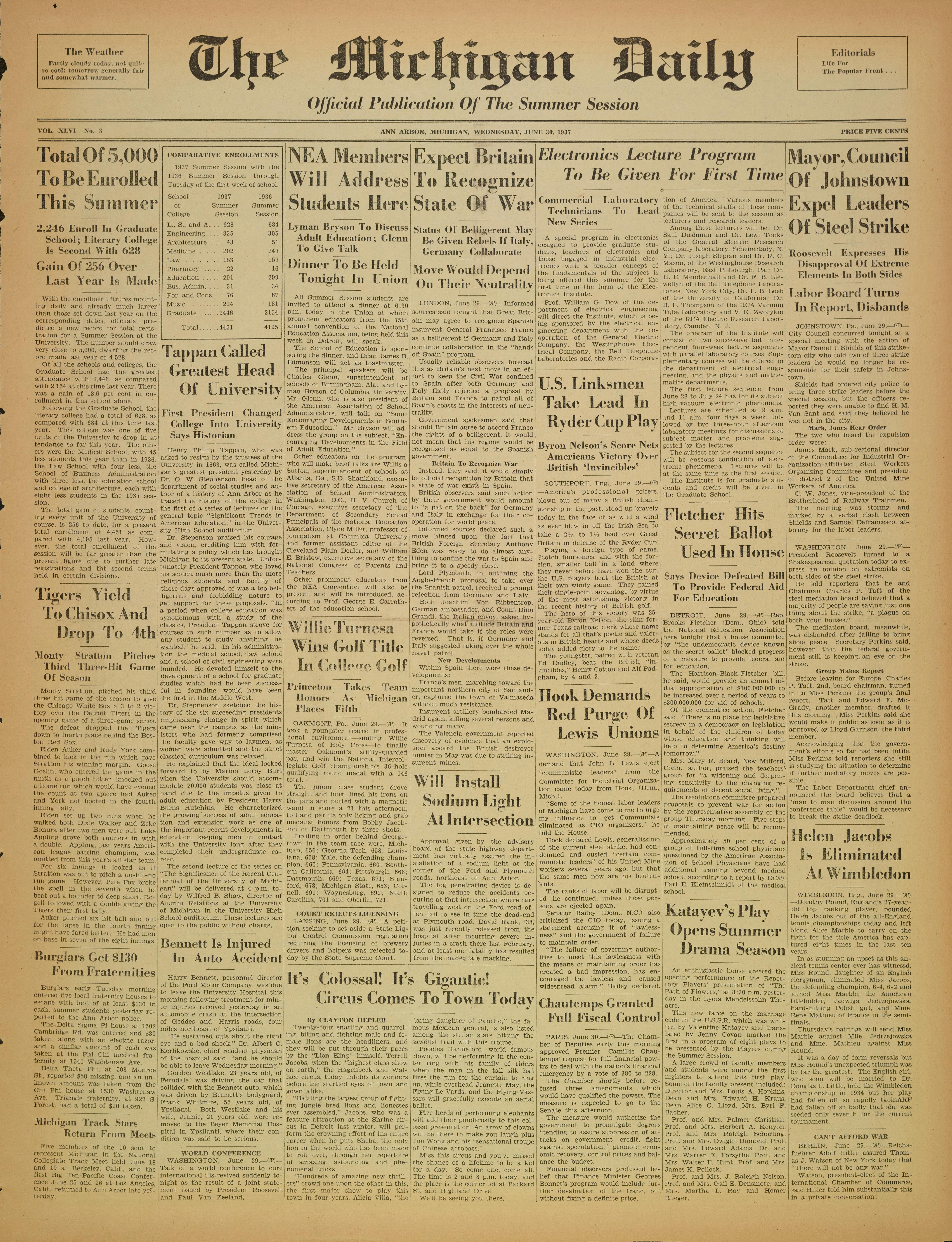 VOL. XLVI No. 3 ANN ARBOR, MICHIGAN, WEDNESDAY, JUNE 30, 1937