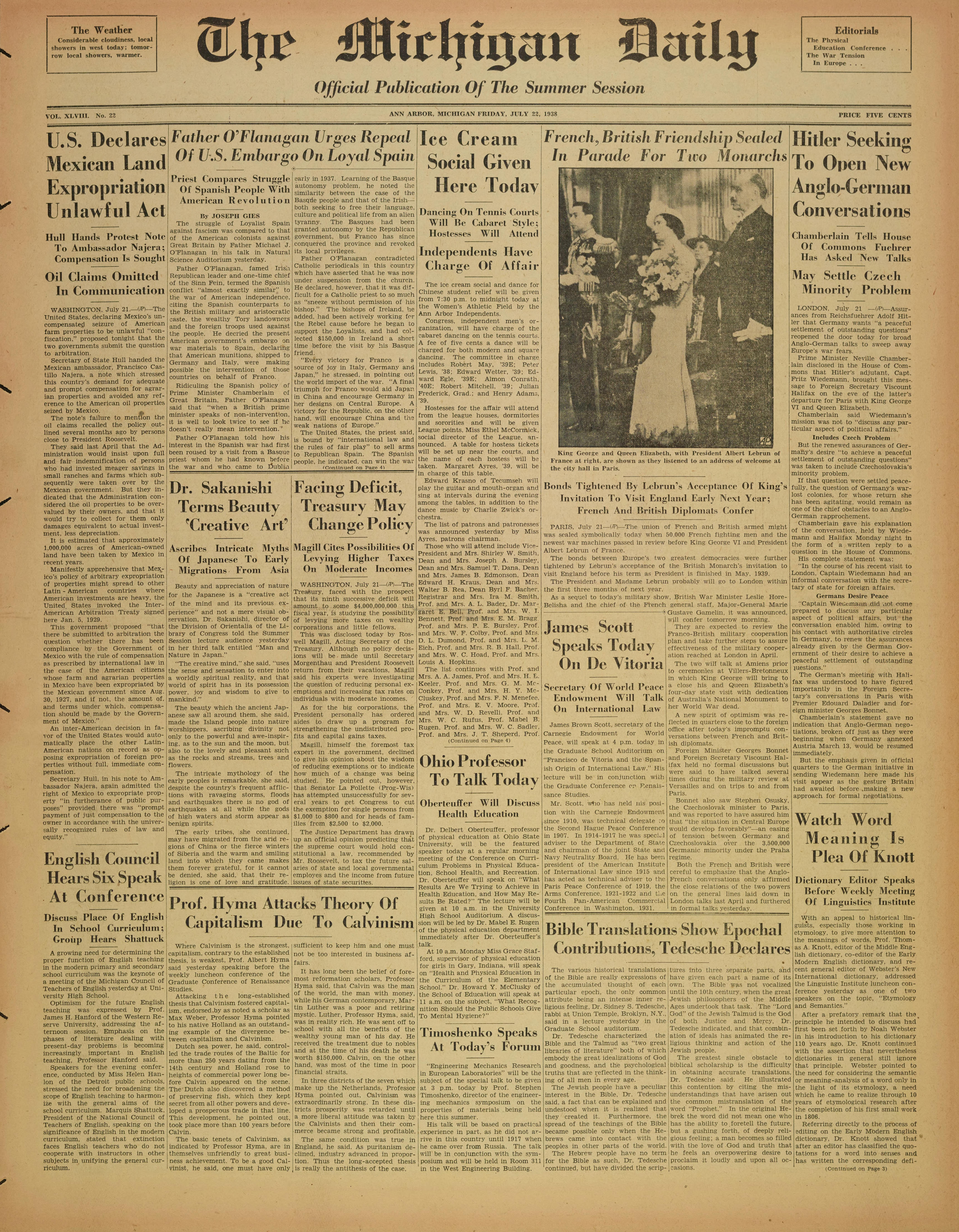 VOL. XLVIII. No. 22 ANN ARBOR, MICHIGAN FRIDAY, JULY 22, 1938