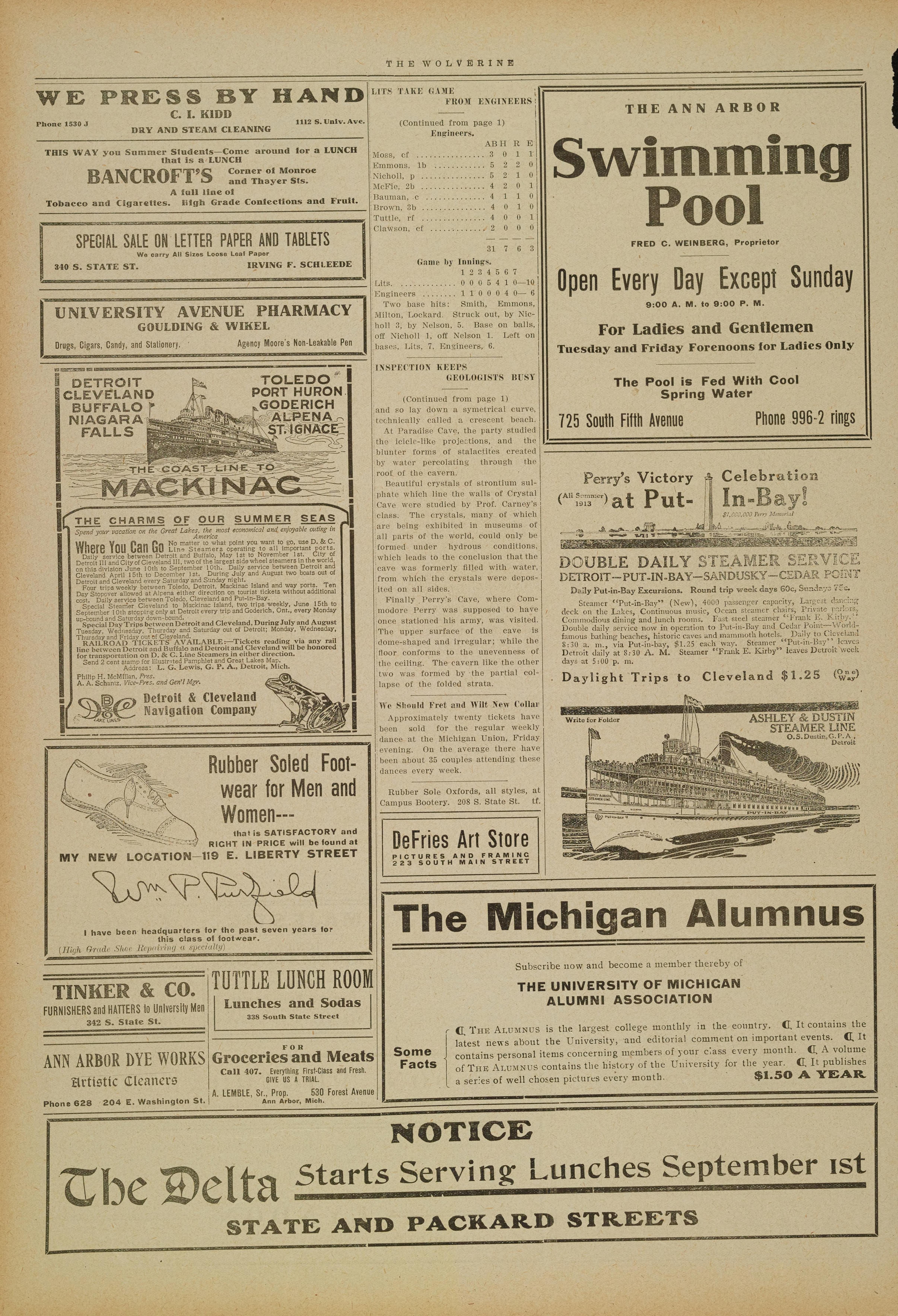 Foor trips weekly borween Toledo, Detroit, Mtackinao Iland and way porte. Ten