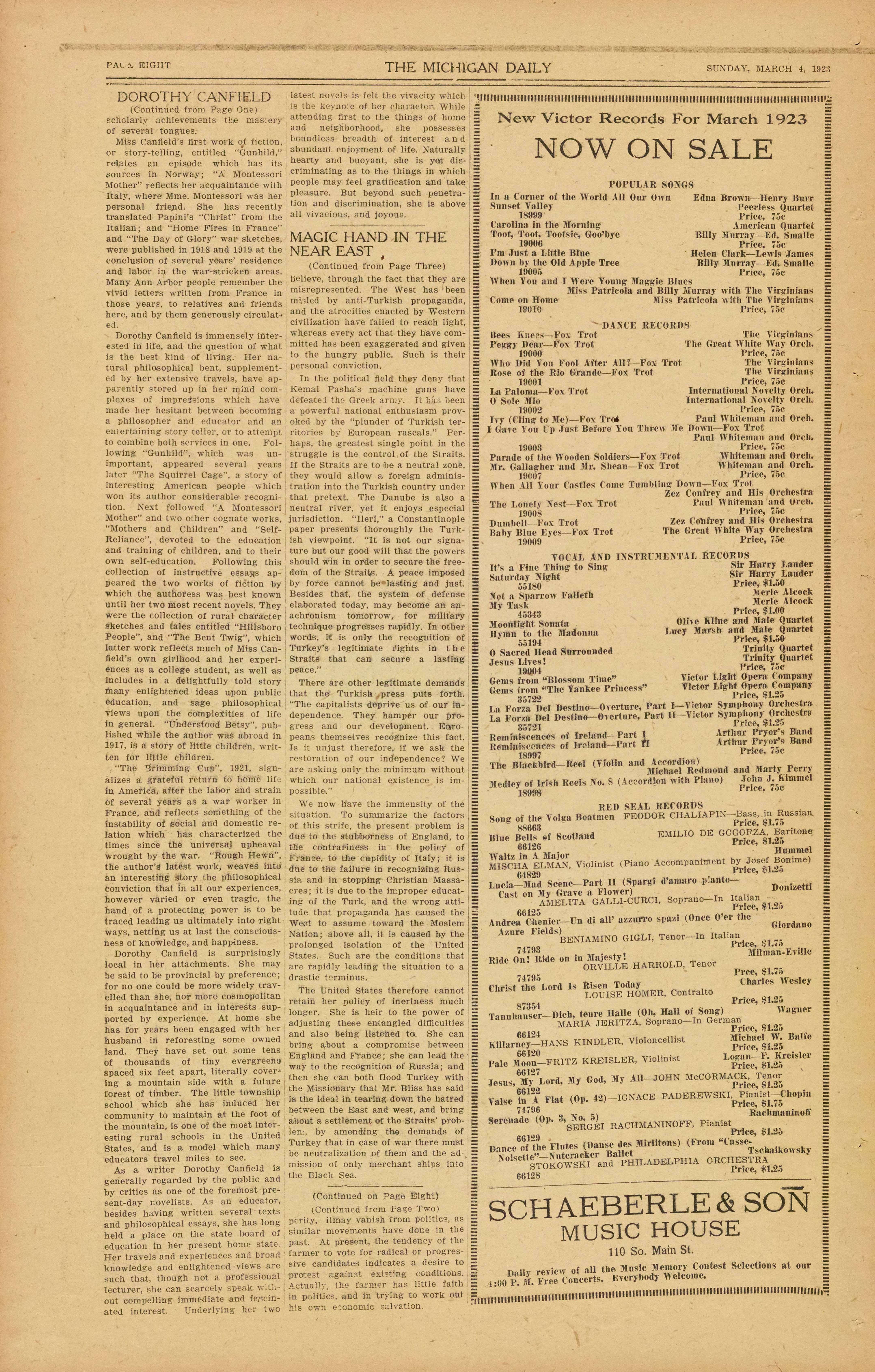 SUNDAY, MARCH 4, 1923