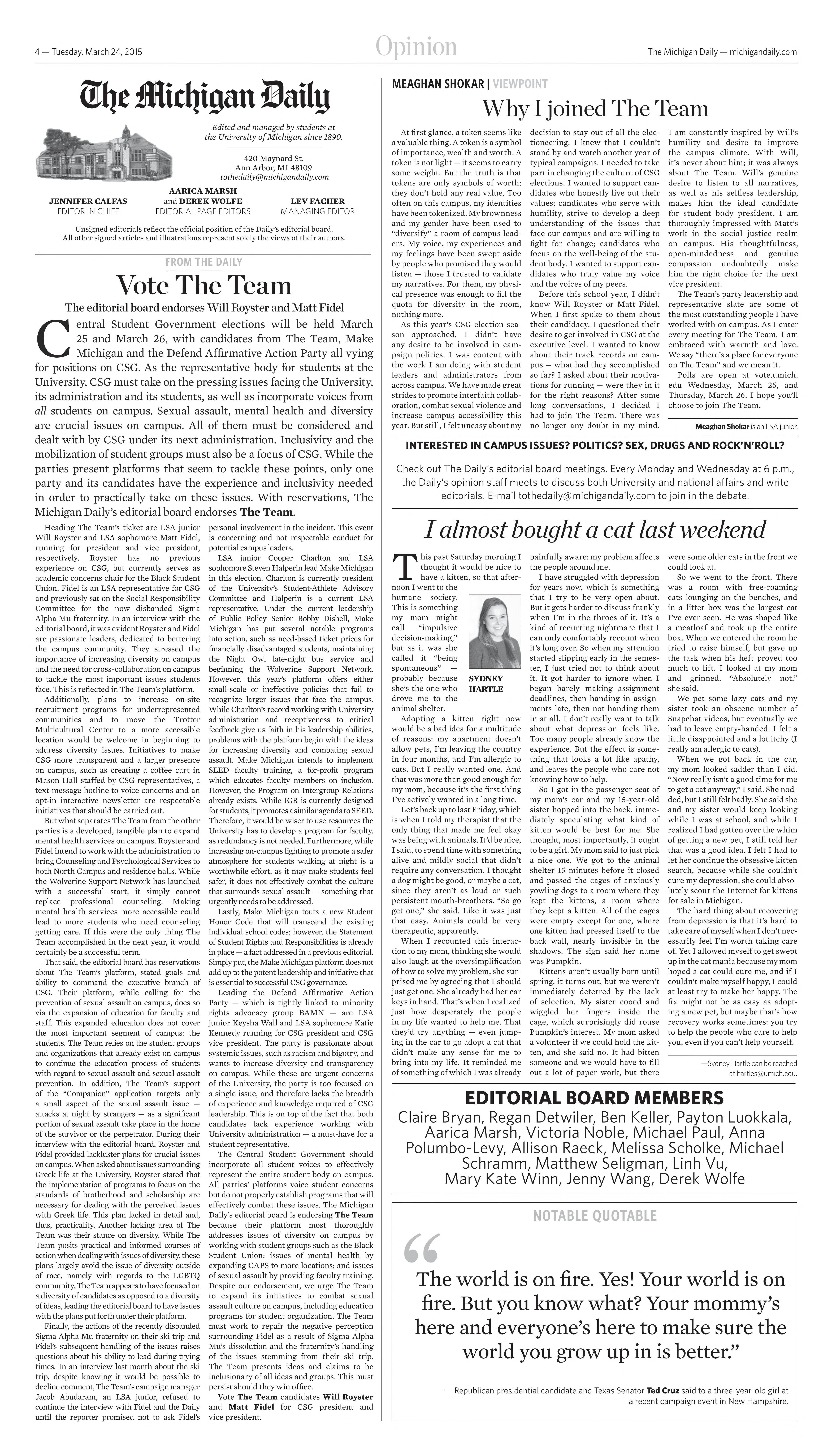 Check out The Daily’s editorial board meetings. Every Monday and Wednesday at 6 p.m.,