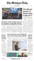 LSA junior Holden Spencer mans Theta Xi’s camp on the Diag. The fraternity will be stationed there 24 hours a day to protect the block “M” until the football
